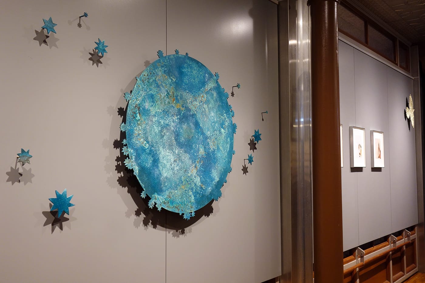 The opposite stained-glass window, with its field of stars against a fragmented landscape of blue, was created by Smith with architect Deborah Gans and installed in 2010. It replaced the industrial glass blocks, placed by the struggling congregation in 1944, that had filled the void. With no record or photographs of the original window to refer to, the museum opted for a contemporary interpretation instead of a recreation. Now it is hosting 50 pieces of Smith’s work in Below the Horizon: Kiki Smith at Eldridge, the first site-specific exhibition to use all three floors of the building.