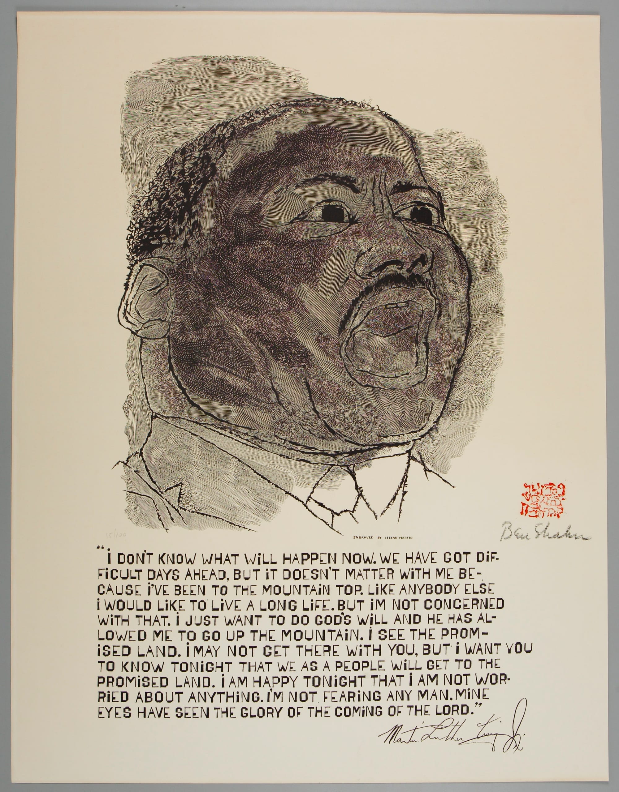 The young artist was taken out of school in his teens to help support his family, but an apprenticeship at a Manhattan lithography workshop proved a fertile training ground for his creative aspirations. After studying at art schools including the Art Students League of New York, Shahn traveled to Europe and Northern Africa in the mid-to-late 1920s. There, he immersed himself in both the artistic avant-garde of Paris and in the unique Arab-speaking Jewish culture of the Tunisian island of Djerba.