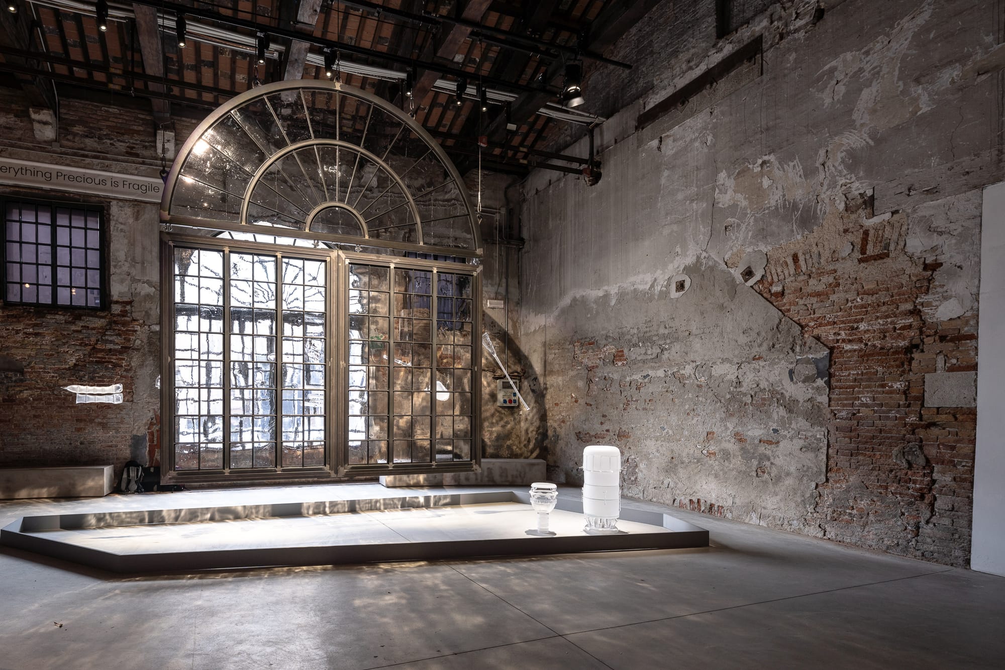All of these realities exist together as one, undermining the hierarchies of history. The sticky irony about biennials is that they often demand the viewer to reflect — on oneself, the condition of art production, the state of the world — without turning the mirror back onto itself. Quenum’s L’heure Blue (2024), a series of cultural objects rendered in glass (such as a drum and a broom) centered in front of a bay window that’s staged in front of the Arsenal’s own bay window, doesn't let Venice get away with its own uncomfortable past. It’s a confrontation of “Venice’s own role in the history of slavery,” Quenum reminds us. (Il Arsenale is where the ships of colonialism were built, lest we forget.)