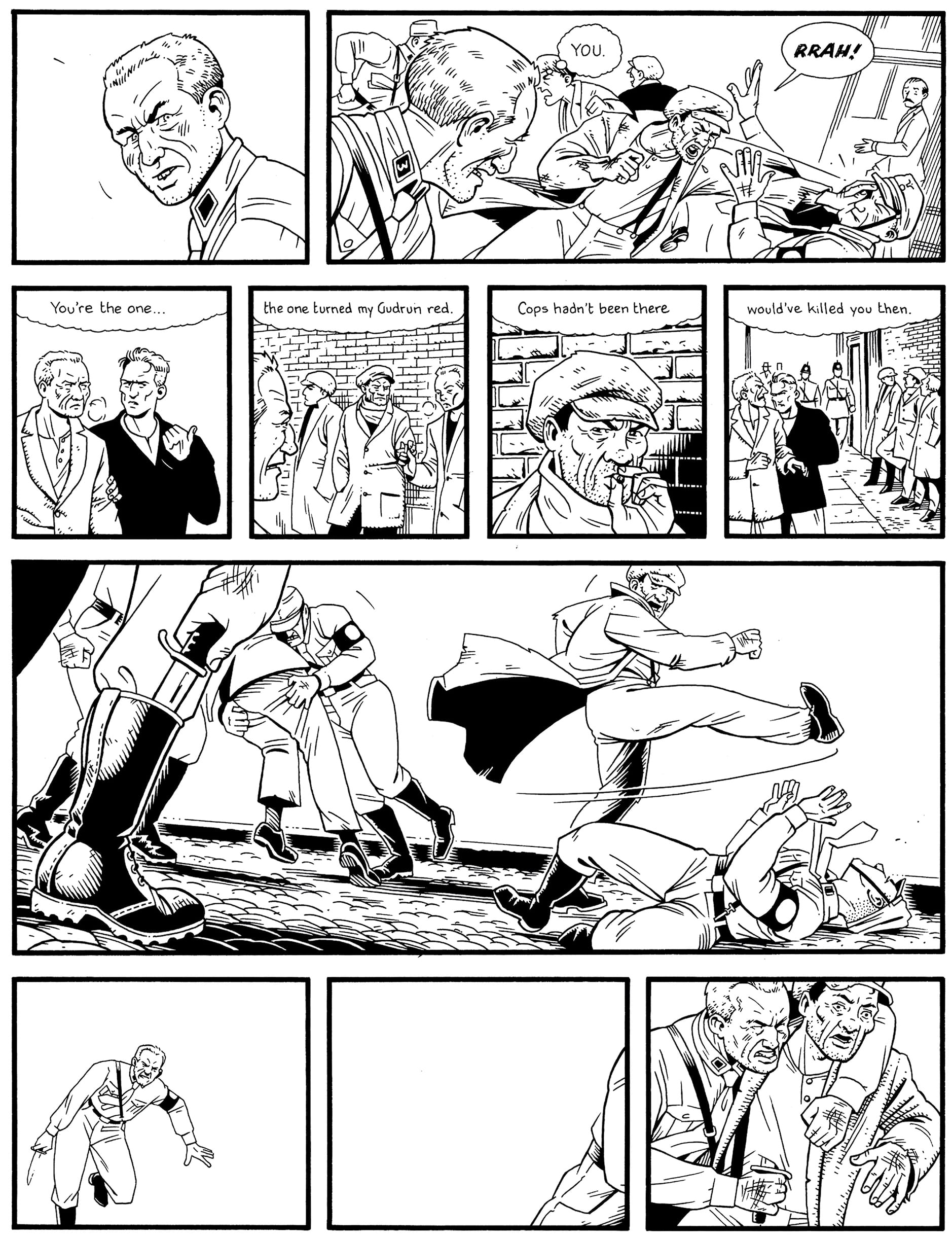 Against the backdrop of the rising Nazi Party, these characters evolve through their different attempts to keep up with the times. Marthe, an art student from the countryside, moves to the big city for the first time at the beginning of the series, and becomes both more worldly and more world-weary over the course of the story. Anna, Marthe’s friend and eventual lover, is a trans man who watches the queer capital of Europe slip backward from progress. Kurt Severing, a journalist, finds that his efforts to expose the truth seem ever more fruitless against larger machinations that continue to turn regardless of public opinion. One of the standouts is Silvia, a young girl whose family is torn apart (her father is a Nazi, her mother a communist), and after a tragedy winds up on the street. She eventually becomes a hardened communist scrapper. There are few real-life people in the story (major historical figures appear rarely, and only to illustrate big changes), and none of the main cast does anything to impact history. This is about people who lived the past, not those who made it.