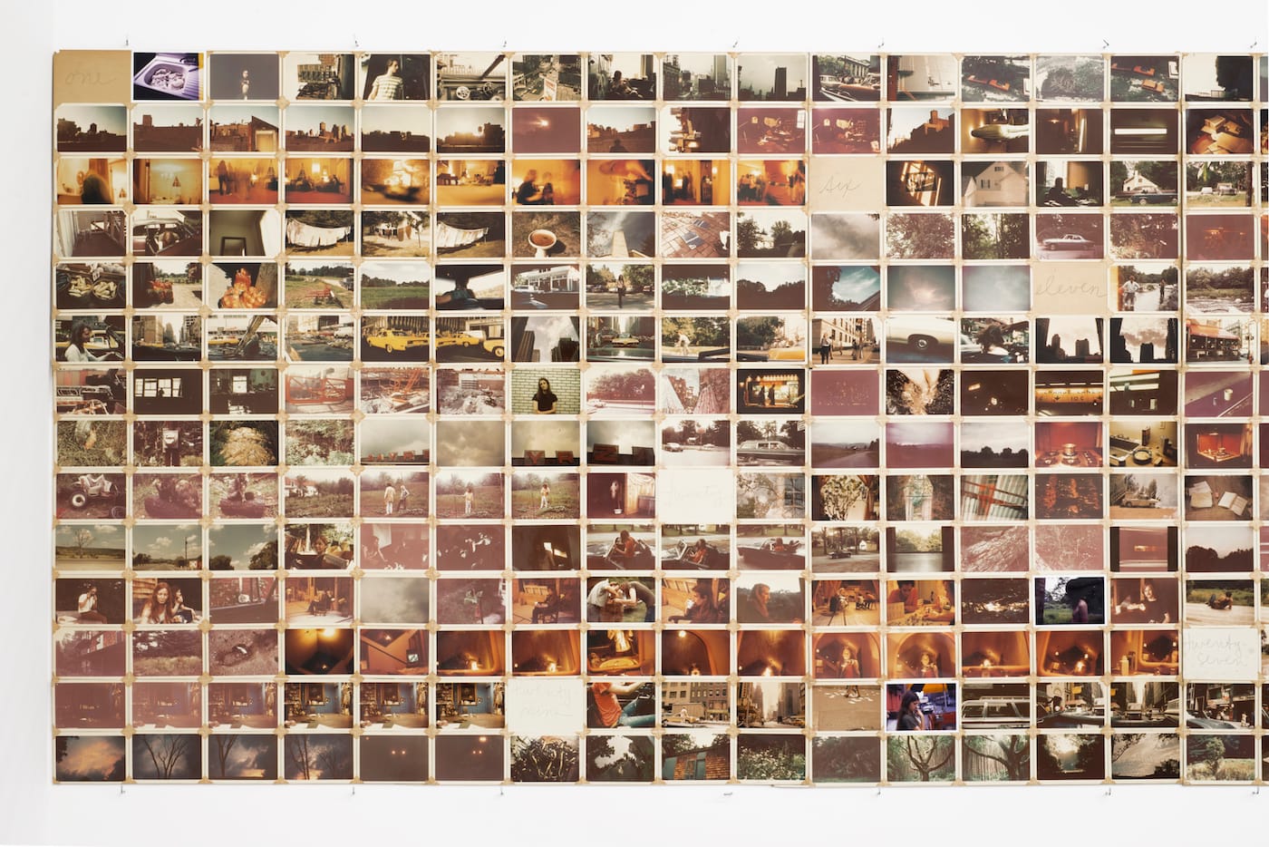 Yet there is still a relation between the way that both Memory and still lifes establish a space between the infinite and the finite. Like a still life, Memory is inescapably of its time. The cars and buses are the first to betray this, along with the clothing and hairdos, the architecture and street signs. The landscapes of upstate New York and New England have also changed, due to invasive plants and trees, less pollinators, more deer, habitat loss. A few poets at the gallery even discussed whether light itself has changed since Mayer first wrote the piece — is there more pollution hazing the sun or less? The Hudson River is cleaner, but the Earth is hotter. Has sunlight, captured by the camera, changed? But the eternal is different from the infinite. Mayer has talked about her writing being “endless,” and her temporal constraints — a month, a midwinter day, nine months — can seem like frames around an otherwise infinite effort, in a play between what is endless and what ends.