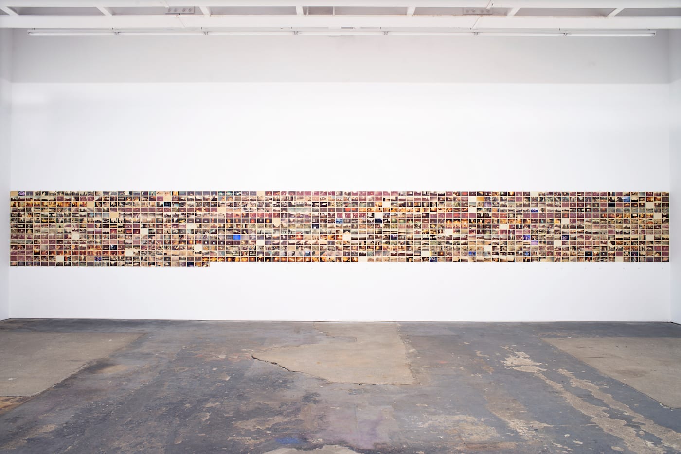 Indeed the piece is not “slick.” Much as a fossil arrests time in its disruption of the surrounding rock, Memory is instead a snag, a trap where memory is caught and held. Its small, slowly discoloring photos installed as a wall-to-wall horizontal spread, accompanied by a recording of the artist reading her journal, evoke what is unwritten. As Mayer says, “memory is air.”