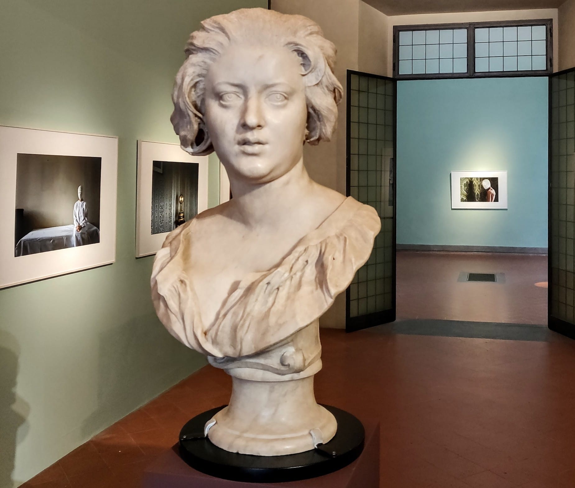 The sculpture is paired with contemporary photographs by Ilaria Sagaria in an Uffizi exhibition about violence against women.