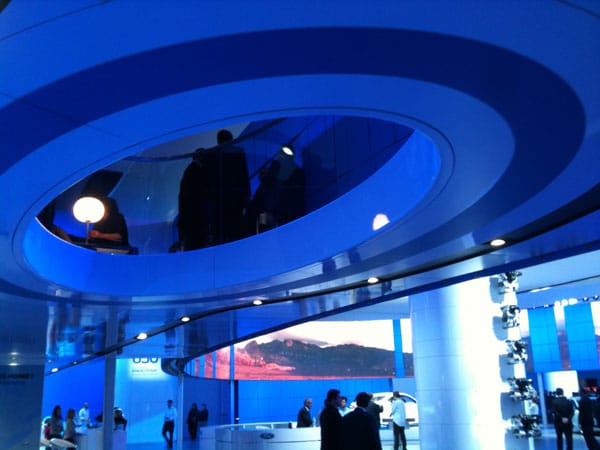 I then walked by various other displays that were typical of auto show booths: there were straightforward videos of cars racing and a model on a podium described why this particular car is the greatest and most advanced.