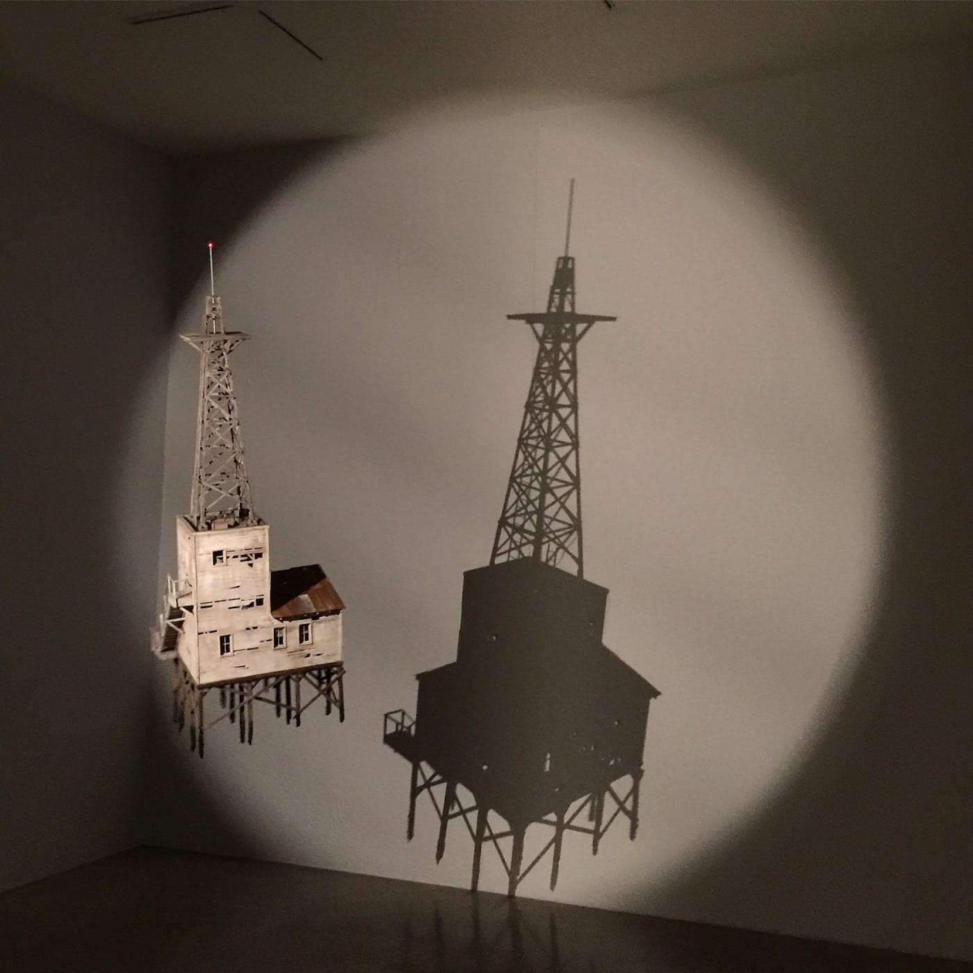 This exhibition was like entering a steampunk tinkerer’s workshop. Michael C. McMillen combined the languages of vernacular architecture, retro-futurism, sci-fi whimsy, and a healthy dose of dystopia — all the rage nowadays — in this show. One work, “Dr. Krump’s Mobile Field Lab” (2004–14), pretended to be a lost trailer of some fictional character, and the space is stuffed with the refuse of a strange pseudo-scientific type of imagined nostalgia from a “golden age” of America. Here, like most of his best work, something appears to be “off,” as if the object was transported from an alternate reality and placed under glaring spotlights of a laboratory. In his ghostly “Della Sala (Interior with Stairs)” (1985) you look through a hole in the wall to see a miniaturized space. In another, “Transmitter” (2014), a spinning tower mesmerizes you as it spirals like something out of a disaster movie sequence. McMillen’s experience as a prop maker and model designer is clear, but the artworks go beyond the surface to manufacture a sense of deep-seated discomfort that made the show unforgettable. —Hrag Vartanian