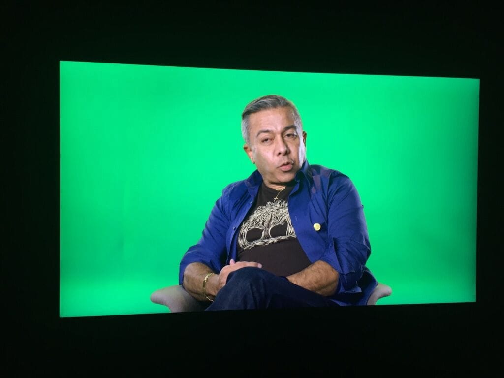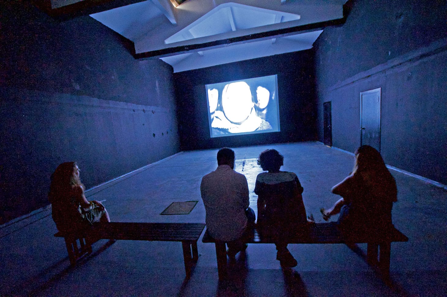 When visitors descend into the basement of the gallery, they find projected on a large screen well-known actors Alec Baldwin and Julianne Moore acting out the narratives of six refugees in front of a green screen. The artist Candice Breitz has edited the film to a little over seventy minutes so the individual stories tend to get lost. One more level below, refugees themselves tell their stories across six much smaller screens. The videos are each several hours in length and demand a different kind of attention from viewers. That Breitz stages the individuals in front of green screens, too, suggests this seven-channel video installation is a commentary on the modes through which viewers are willing to empathize with others as much as it is a critique of Hollywood. —AKP