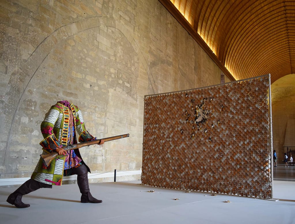 The Palais des Papes, a stark medieval fortress that, for six decades during the 14th century, was the residence of the Popes and the seat of Christianity, makes for a stunning backdrop for this exhibition of contemporary African art drawn from the collection of holiday lighting mogul Jean-Paul Blachère. The palace is the show’s main venue, making for dramatic juxtapositions like an El Anatsui sculpture of recycled metal draped in the center of the popes’ ornate filing room, or the two gun-toting mannequins in a Yinka Shonibare MBE installation facing off in the palace’s grand audience room. Though the exhibition includes some underwhelming works as well, the impact of the strong pieces is enormous, from the bewitching, mutated clay figures of Senegalese sculptor Seyni Awacamara to the startling weavings of Nigerian Australian artist Nnenna Okore. A personal highlight was also a small, colorful, architectural construction by the Congolese sculptor Bodys Isek Kingelez, whose upcoming retrospective at the Museum of Modern Art is one of the shows I’m most looking forward to in 2018. —Benjamin Sutton