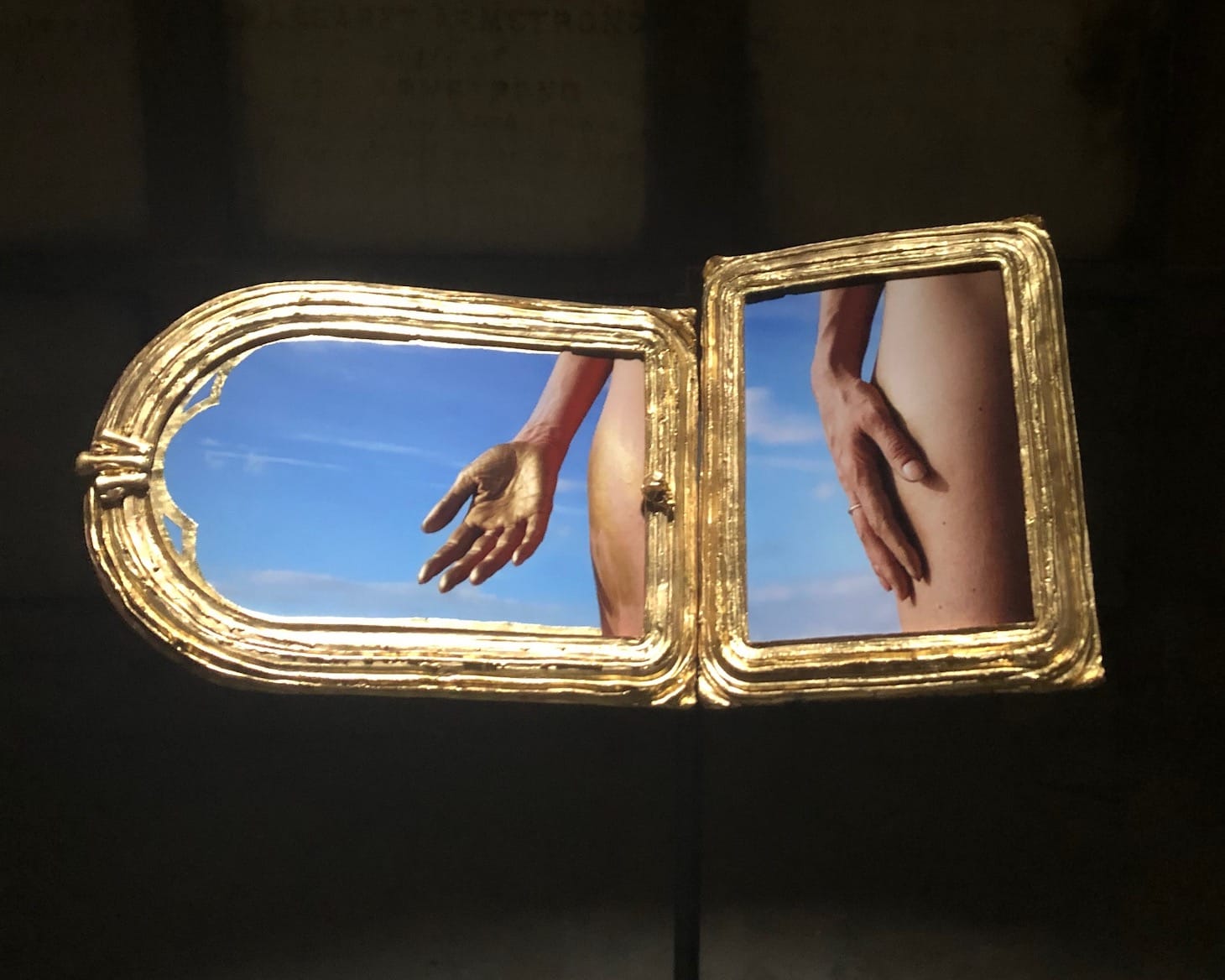 In I am fertile ground, Antoni presents a series of elaborate photographs of her own body, and those of loved ones as single images, diptychs, and triptychs, within the Catacombs of the Green-Wood Cemetery. Dramatically lit from skylights above the darkened spaces of these historical vaults, the works are reminiscent of medieval reliquaries, Eastern Orthodox icons, or personal devotional objects. Antoni’s project connects mortality, desire, intimacy, and the ways in which absence and longing are a fundamental part of life. —Laura Raicovich