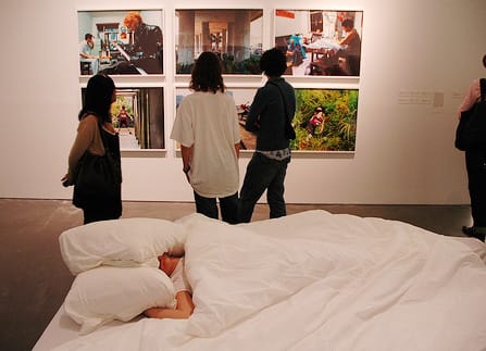 - “89 Seconds at Alcazar” – While Eve Sussman may never re-create the momentary magic and surreal dislocation of her 2004 Whitney video, it was one of the most memorable, single art works of the aughts. If artists only have one truly great idea, this was the one to have. It seemed to crystallize all of her ideas about feedback and she used video in a way that transported the viewer through space and time.