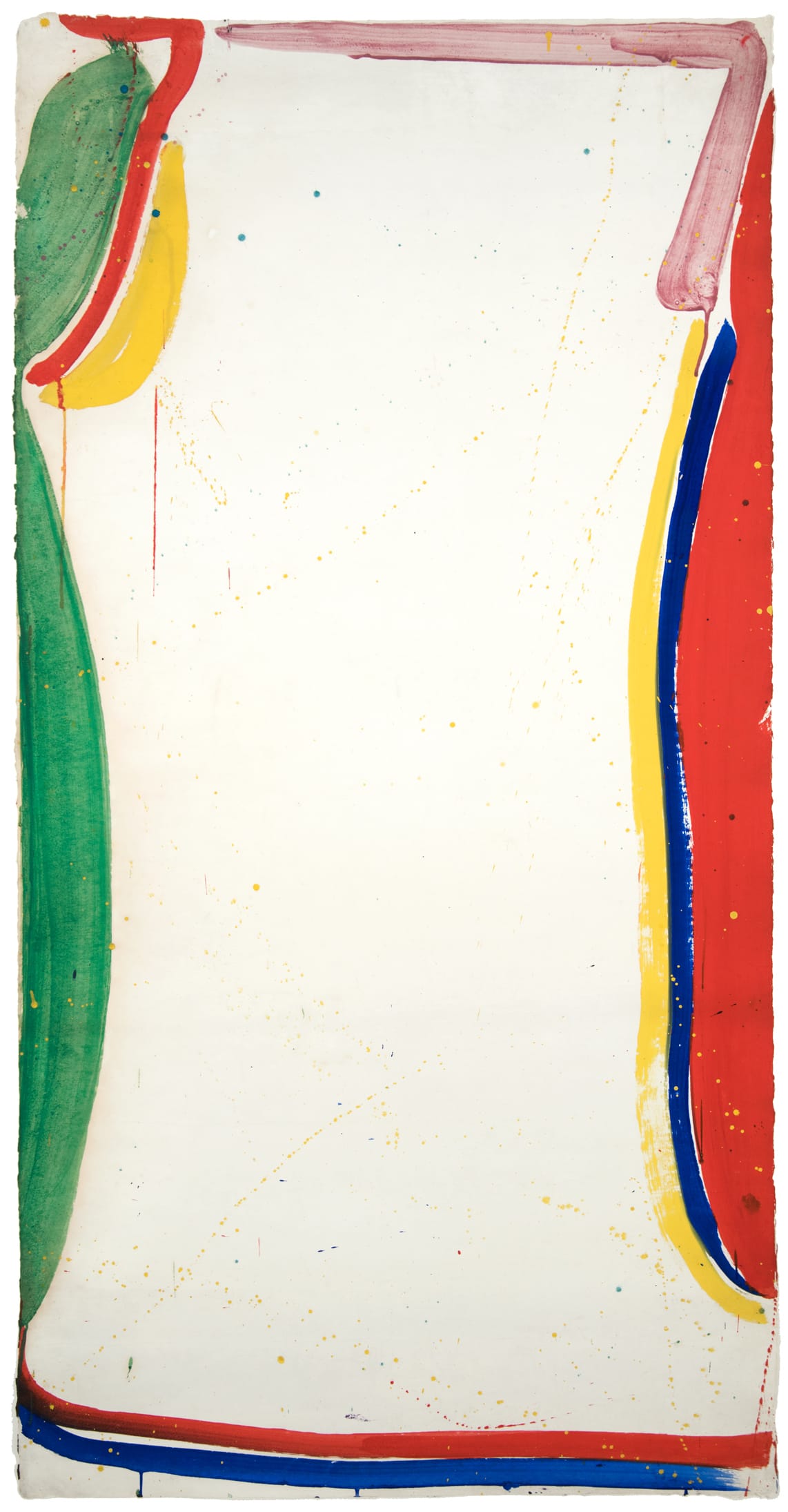 Between the early and late 1950s, all three used a medium that shared qualities we associate with watercolor, the way it bleeds and runs down the surface, for example. Bluhm worked with thinned oil or acrylic: Francis used gouache, acrylic, or watercolor; Jenkins preferred acrylic and watercolor. In terms of dates, Bluhm’s paintings were done within a brief span of time, from 1953 to 1967: Francis’s were made between 1962 and 1994: and Jenkins’s go from 1955 to 1989.