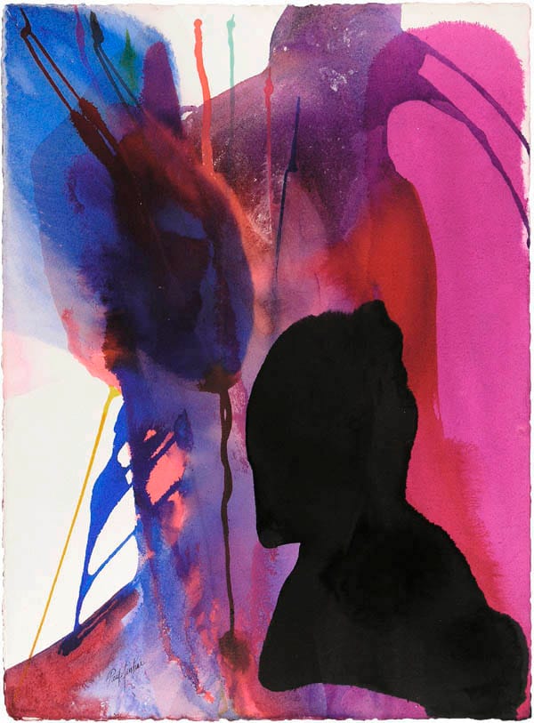 There are a number of strong works by Francis in the exhibition. In a large untitled vertical gouache dated 1965, all the marks have been made along the work’s edges, leaving the interior empty. While Francis has been celebrated, mostly in California and not in New York, the art world still does not how to address Bluhm’s career.