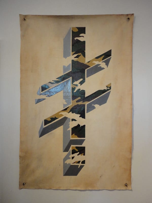 Jon Bocksel’s striking, clean paintings evoke a cross between sign painting and graffiti, pairing weathered surfaces with meticulous brush work.