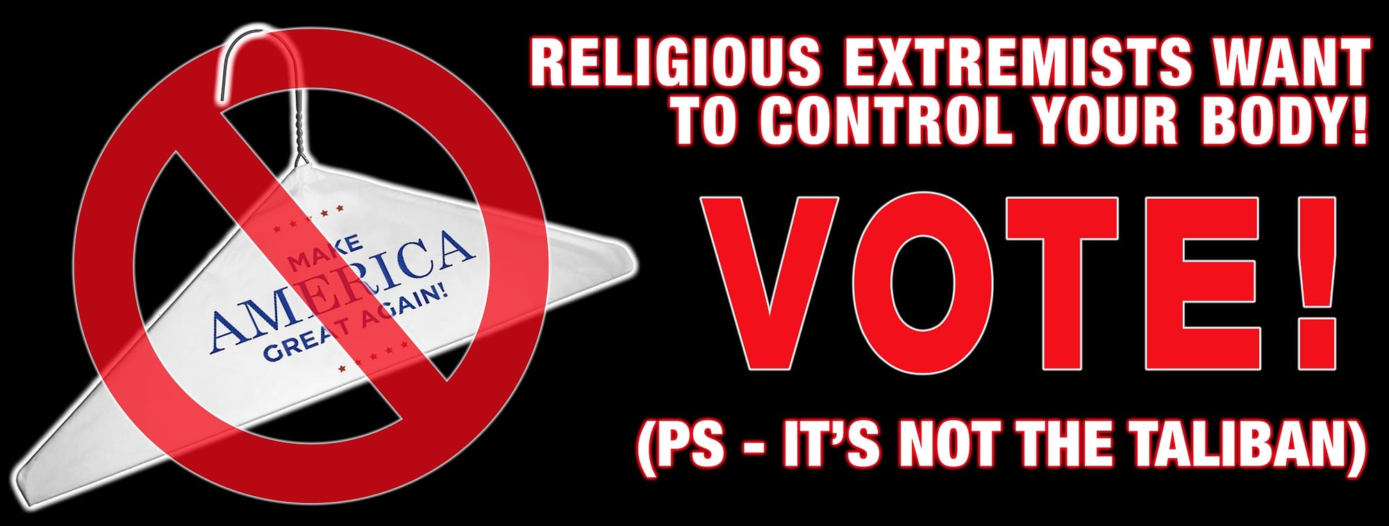 Fiorito is based in California, where she started working on concepts for her pro-choice billboard after a draft Supreme Court ruling overturning Roe v. Wade was leaked to the press in early May, training her eye on the religious underpinnings of the decision. “We’re not a Christian nation,” said Fiorito, who calls the piece “Separate the Church and State” (2022). “They’re trying to do the same thing as the Taliban, controlling women’s bodies through religion.” It’s a sentiment echoed on the billboard, near the word “VOTE” written in bold red text. With her artwork, Fiorino may be calling out the hypocrisy of conservative politicians who denounce the Taliban's repression of women in Afghanistan while crafting policies that show the same disregard for women's rights in the US.