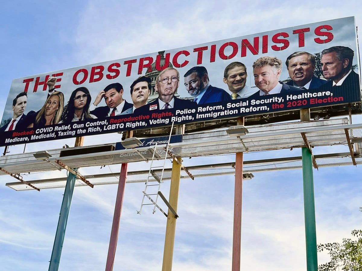 The Grand Avenue Billboard Project enables artists like Karen Fiorito to publicly express their political views.