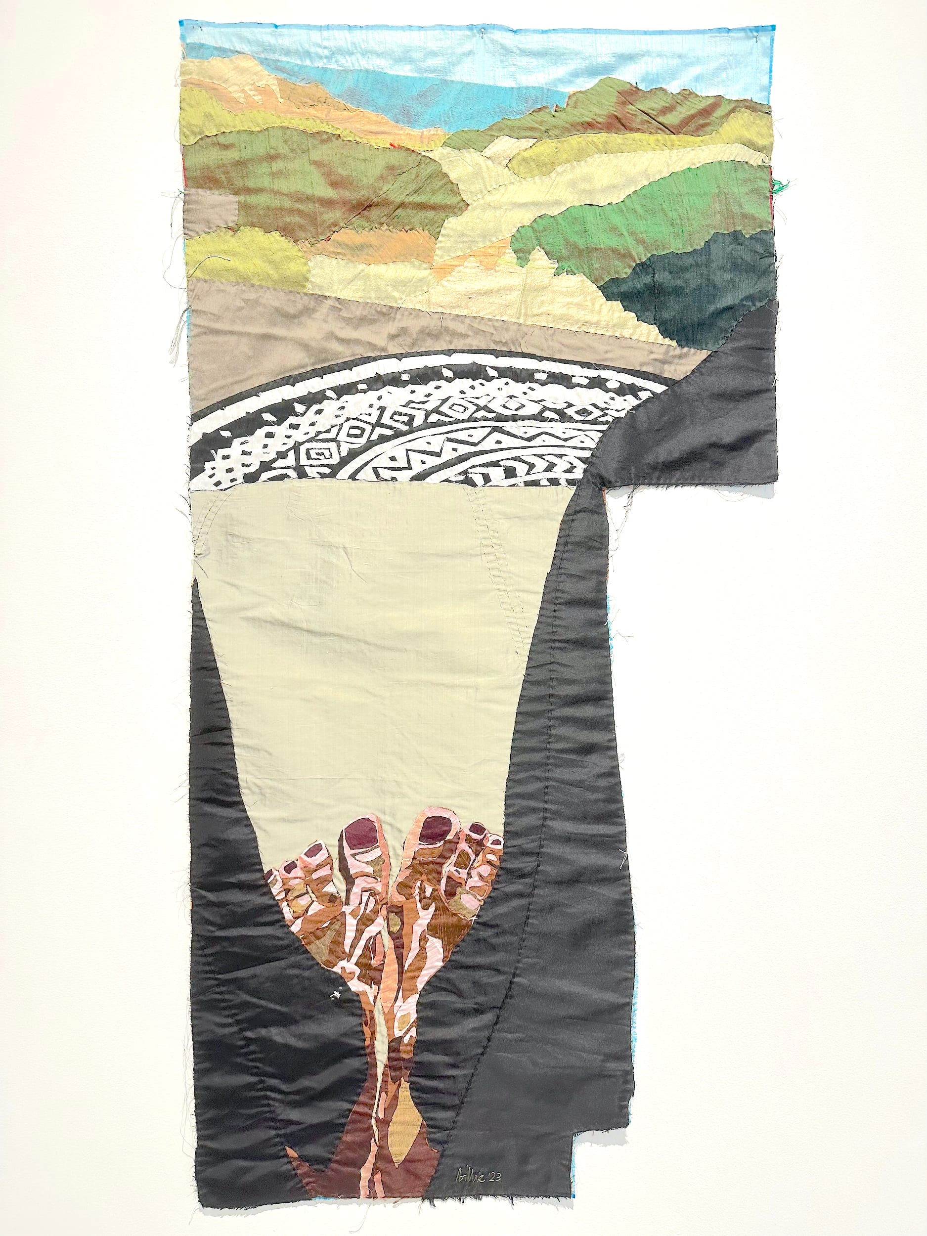 SANTA FE — Billie Zangewa came to use textiles as her creative material out of resourcefulness and necessity. It was a medium that she could work with and store in small spaces. The way that light played with raw silk intrigued her, and she was taken with it as a material born from literal transformation — extracted as threads from the larvae cocoons of silk moths. “That which I was seeking was seeking me; I just had to show up,” she conveyed in an interview with SITE curator Brandee Caoba.
