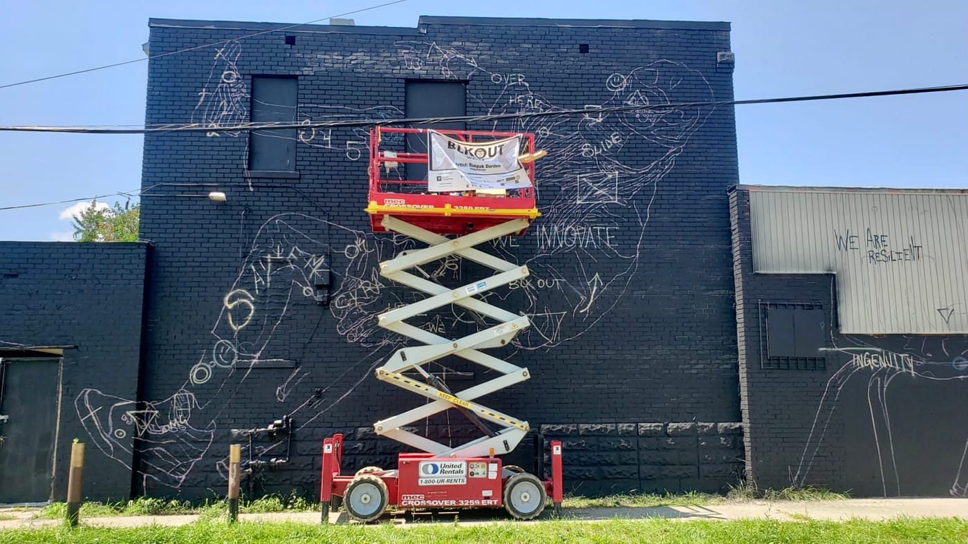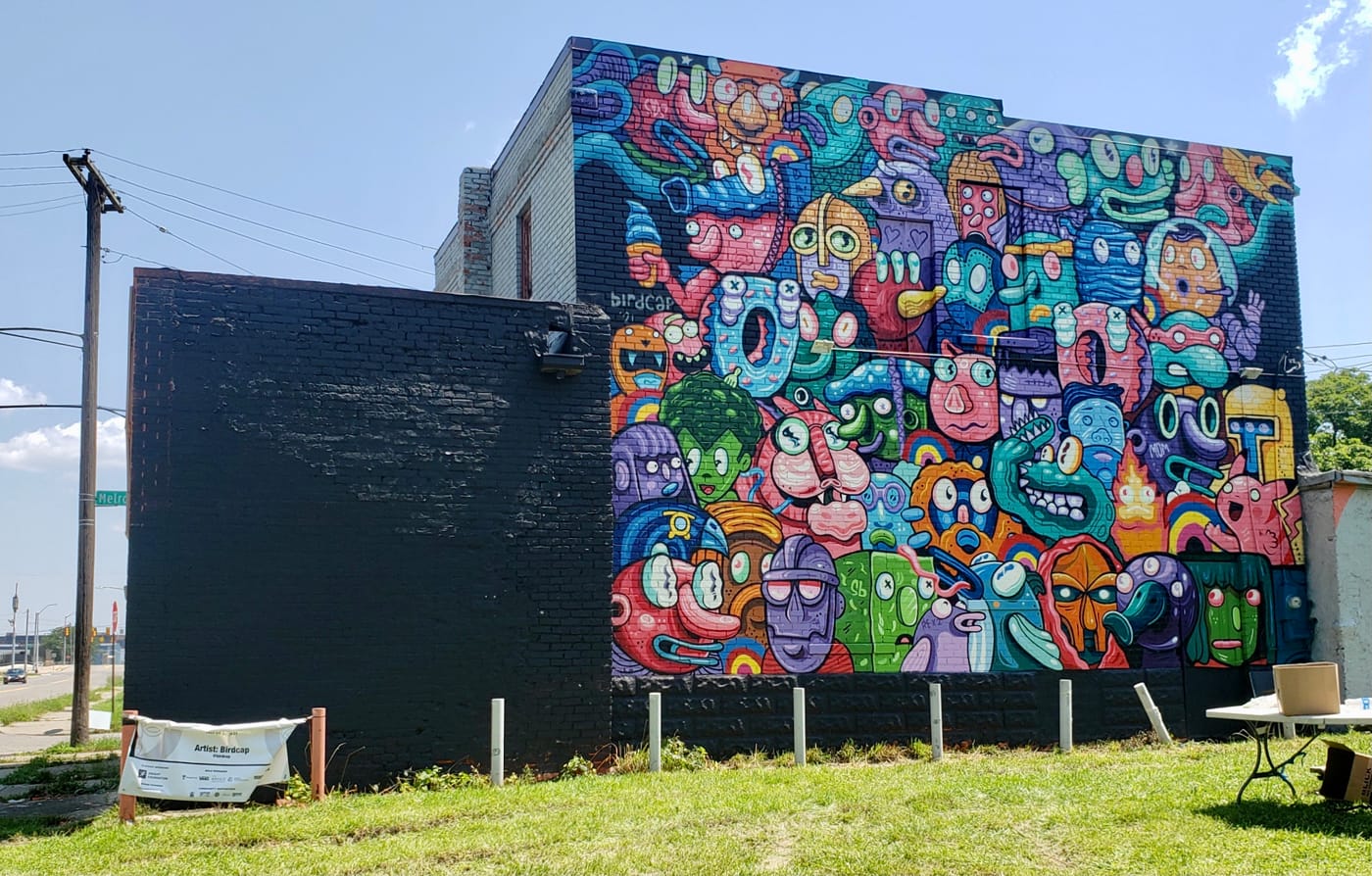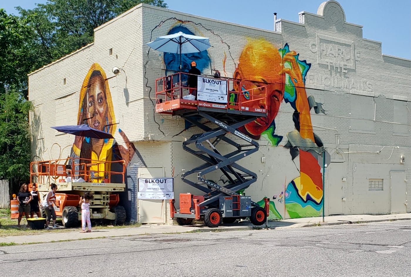 BLKOUT Walls looks to flip that script, with all-Black leadership and majority Black artists from the 19 participating muralists, including a number of Detroit artists who have already made their mark on the city: Tylonn J. Sawyer, Ghostbeard, and 2021 KAID Fellow Backpak Durden. The festival also features some out-of-town talents, like Birdcap, sentrock, and Rahmaan Statik.
