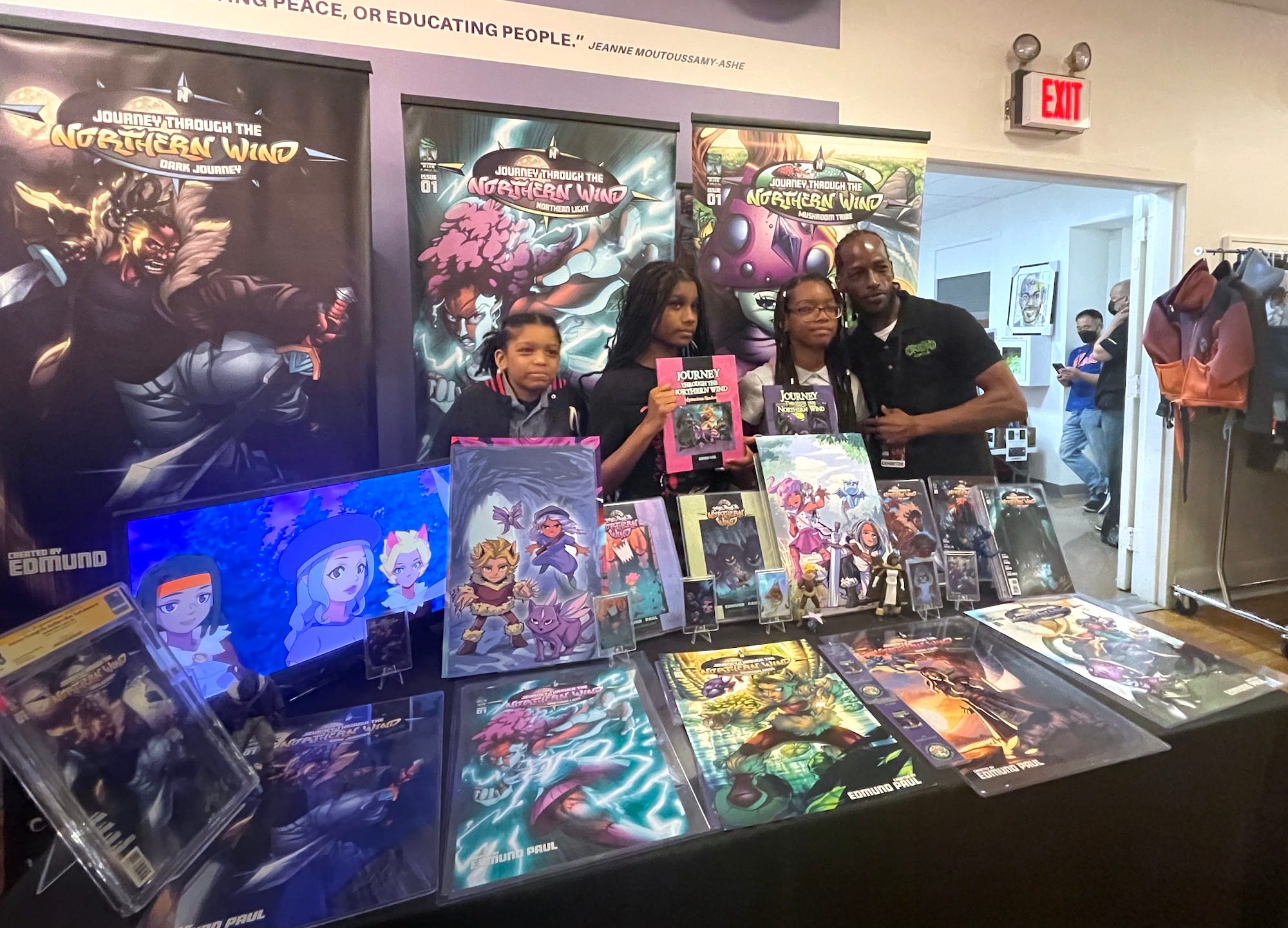 I roamed the halls of the festival, walking downstairs past a collector's table full of vintage comics novels to find Edmund Paul, founder of Northern Wind Comics, and three of his eight children. Paul taught me that making graphic novels doesn't always have to be an isolated activity. His children develop their own characters for the books, and he and his wife write the plot.