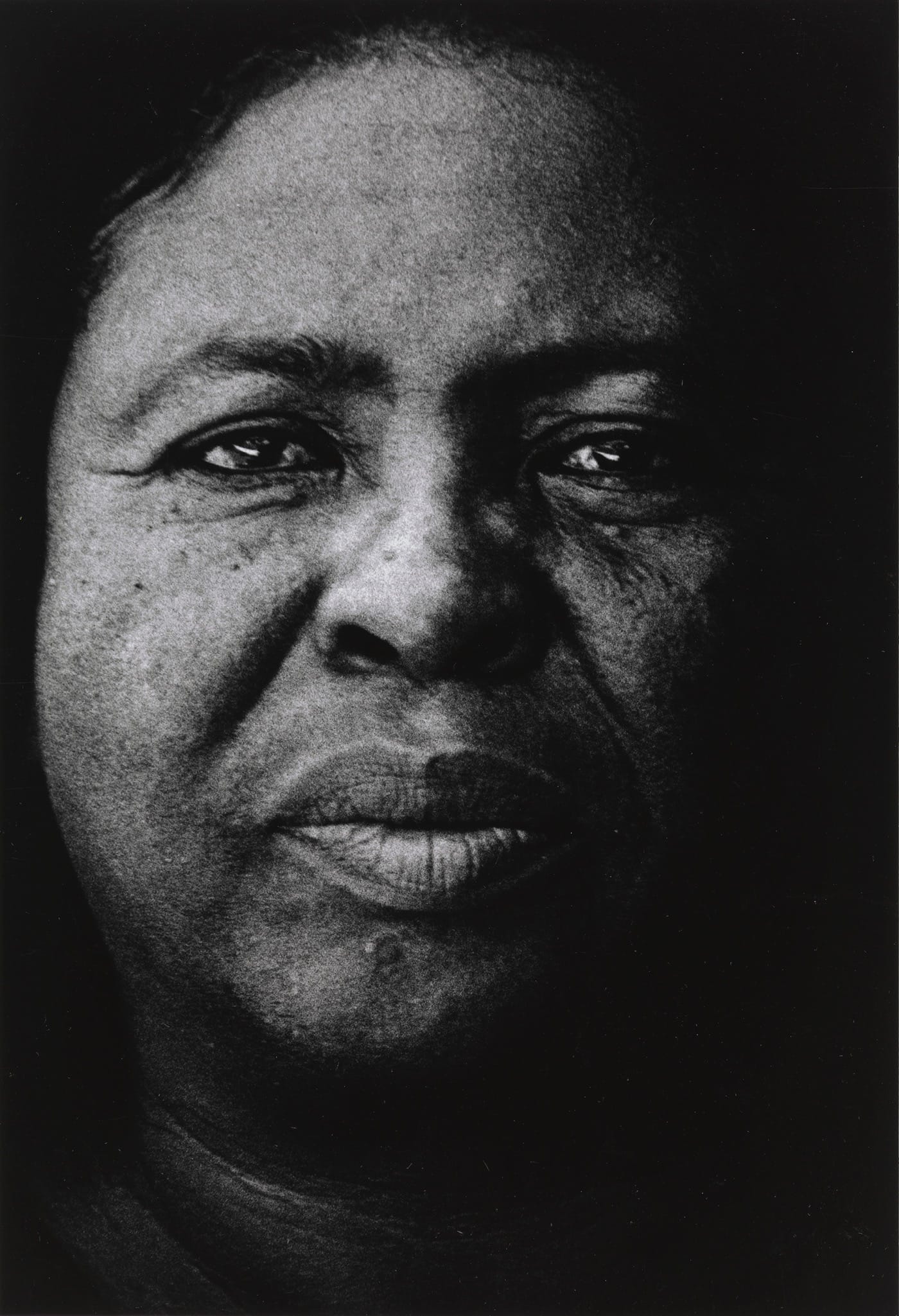 A Commitment to the Community turns decisively toward the politics of racial representation with Draper’s portrait of Fannie Lou Hamer, a central figure in the struggle for black voting rights in Mississippi during the 1960s. He depicts her in ways that defy the too-easy readings that stereotypes encourage. Hamer’s face is seen in close-up, emerging out of darkness, the image’s framing emphasizing the deeply sculpted contours of the features indicative of her African ancestry. She looks directly into the camera’s lens, her expression suggesting the strength and serenity of a woman who had confronted the Ku Klux Klan and the State of Mississippi and won.