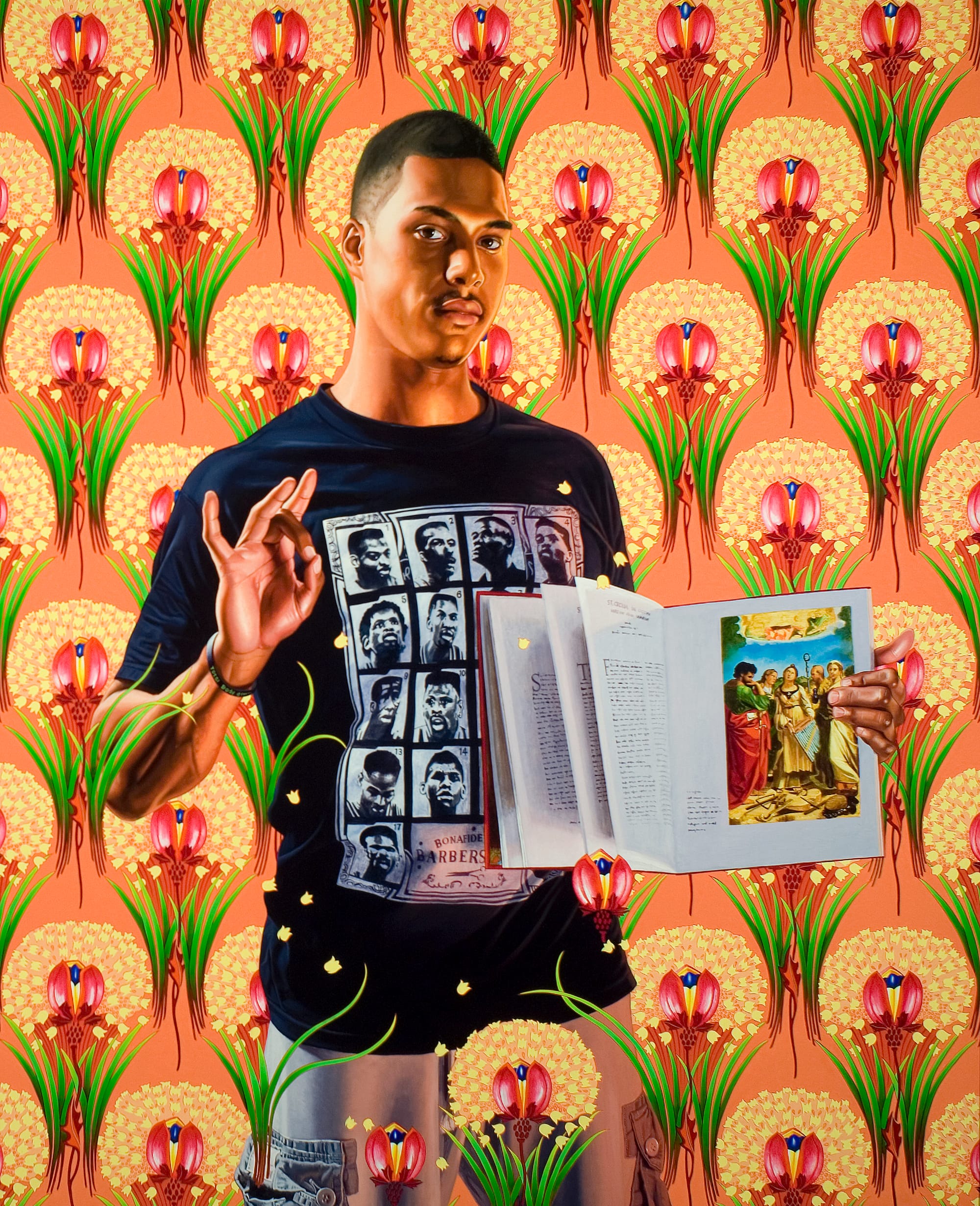 Other artists twist and transform religious iconography. Kehinde Wiley and Mark Steven Greenfield appropriate popular figures like St. Nicholas and the Virgin Mary, recasting them as a young Black man and the mother of a slain Black son. Their paintings, infused with the aesthetic grandeur of Catholicism, speak to the ways that Black existence is attended by both the miraculous and the disturbing, a constant negotiation between joy and grief.