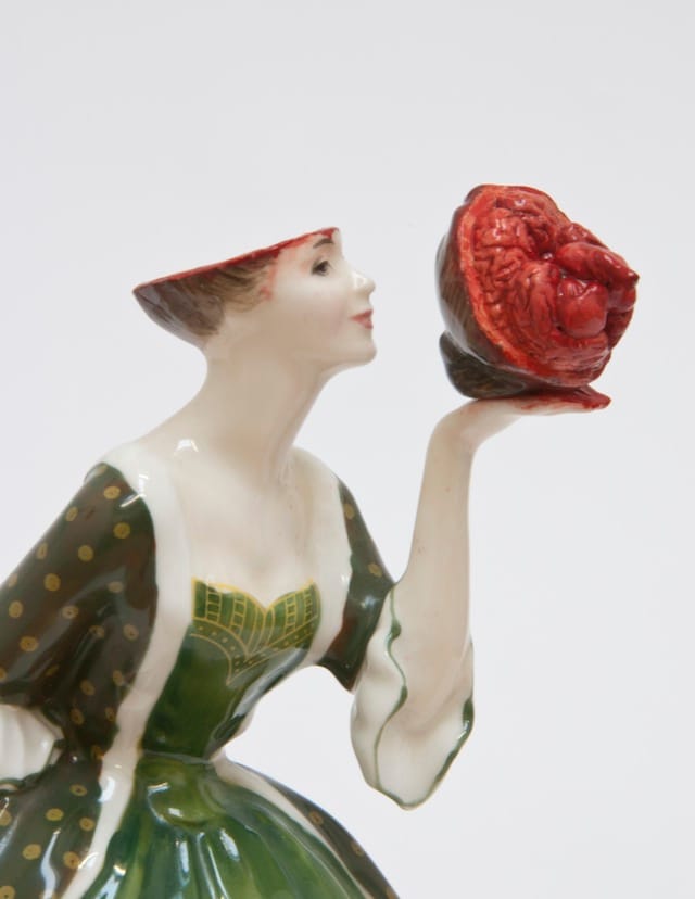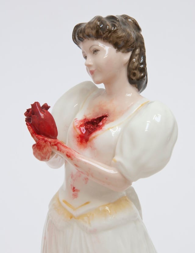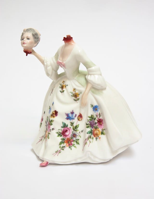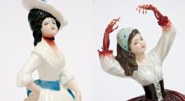 Edinburgh-based artist Jessica Harrison transforms the collectible ceramic ladies that populate grandmothers' china cabinets into spectacles of gore.
