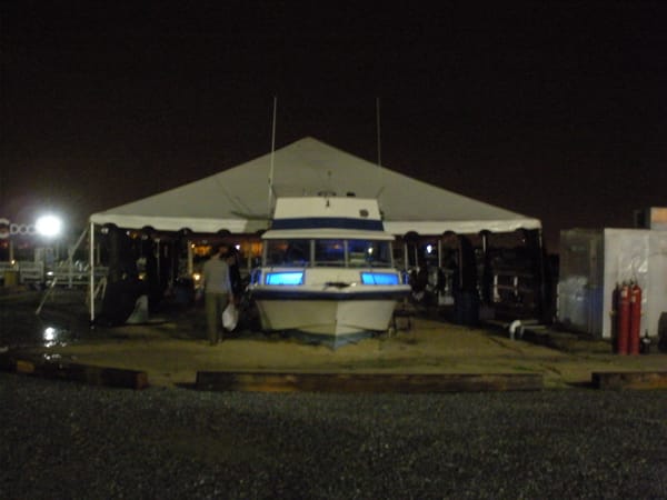 After dropping our bags and liberally applying bug spray, we made our way back to the on-shore tent bar to hang out with the other guests and boatel volunteers. The crowd was young and skewed toward a certain demographic: people weird enough and with enough free time on their hands to think that sleeping on a boat on a Thursday night as part of an art project is a good idea. Soon after arriving I discovered that I was already Facebook friends with another guest. Everyone mingled and talked over improvised dinners, until the scheduled entertainment began: a lecture by writer Porter Fox about trekking in Morocco’s High Atlas Mountains.