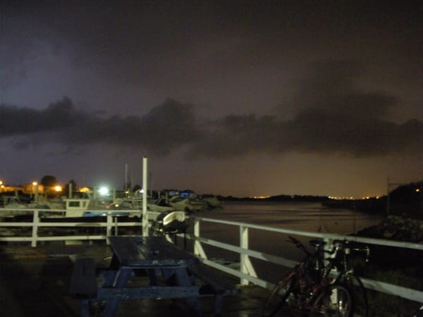 Biking down the boardwalk in the Rockaways, Queens, I glanced behind me at the storm clouds approaching fast. Thunder ripped loudly, and lightning began to flash with increasing regularity. My friend and I had been riding for 15 miles already. We were on our way to Boggsville Boatel and Boat-In Thea