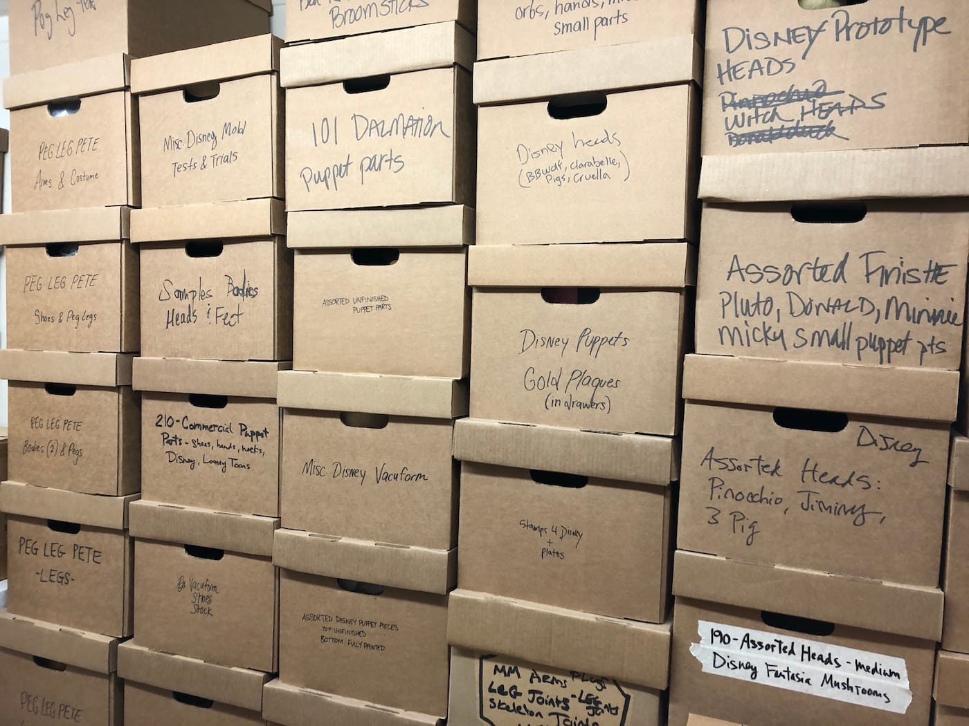 One of the side rooms — which Bechtle calls the “crying room,” where crying babies went during church services — now houses dozens of boxes of puppet parts that Baker made for Disney: “Peg Leg Pete,” “101 Dalmations,” “Mickey/Minnie,” “Goofy,” etc. It also houses molds for three clown puppets — Bobo, Coco, and Toto — that Baker designed and sold at shows around Los Angeles, and which Bechtle says they’re hoping to get back into commercial production.