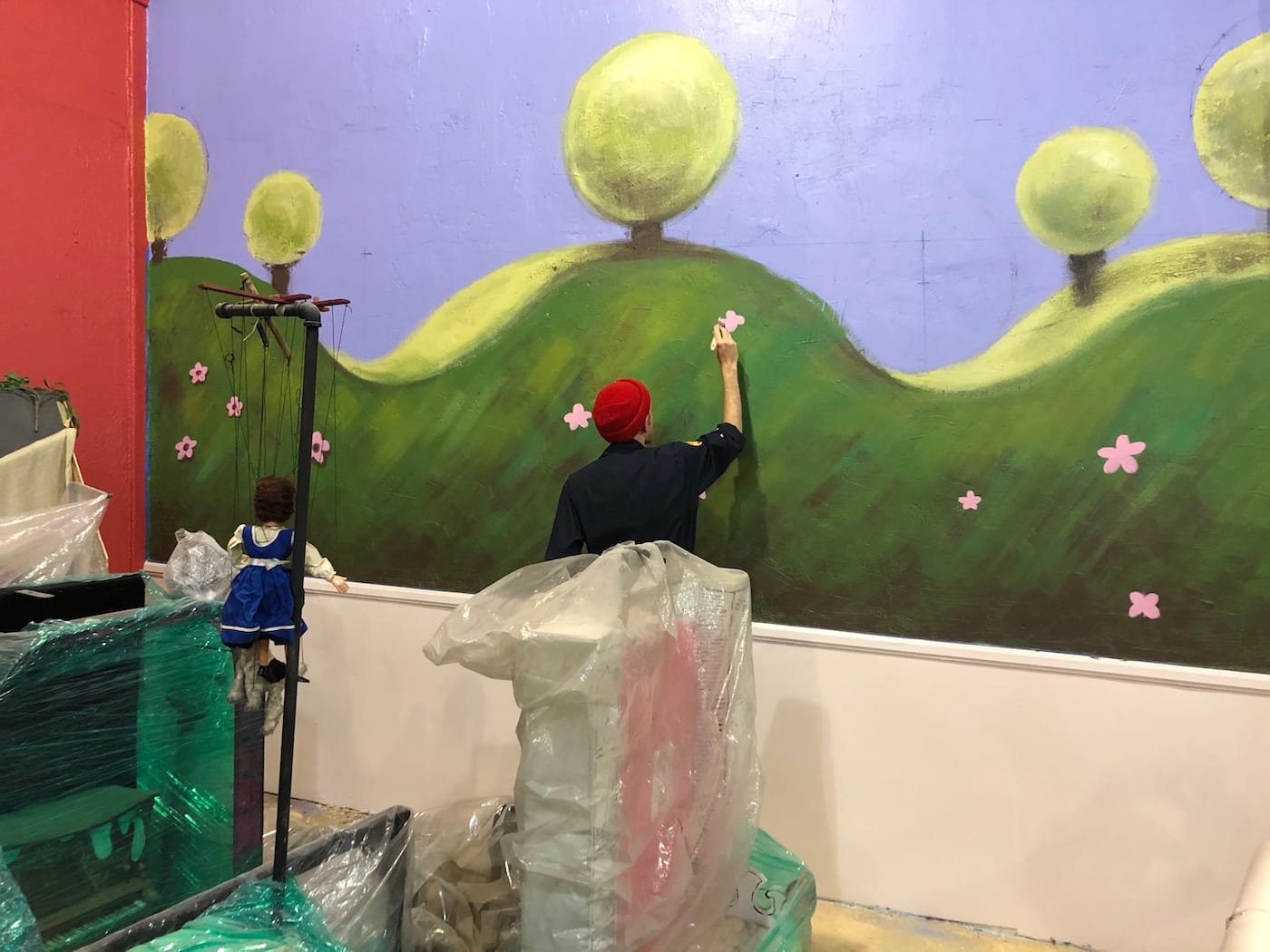 LOS ANGELES — This past May, a small team was busy putting the finishing touches on the new home of the Bob Baker Marionette Theater in Los Angeles’s Highland Park Neighborhood. An artist painted a bucolic scene of rolling green hills on the walls, while a group of workers on a scissor lift carefully hung a large chandelier from the ceiling. A Wurlitzer organ on loan from the LA Theatre Organ Society sat covered in plastic waiting to be unwrapped. Bunches of marionette puppets hung on racks, though the majority were still at the location the theater had occupied for over 50 years on First Street in the Westlake District. “The last thing that hasn’t moved over which gives me stress dreams are the puppets,” said Winona Bechtle, the theater’s director of development and community outreach. “They’re still at the old spot. All 3,000 puppets.”