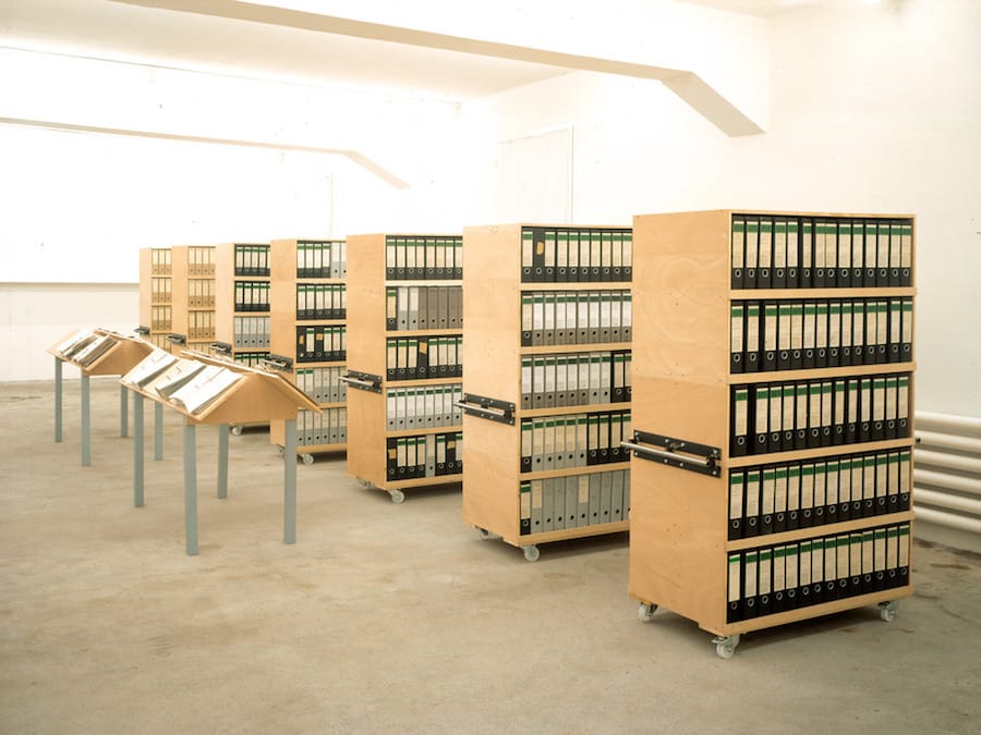 Roth was fascinated with the act of creation and he created constantly. The objects are but one product of this voracious creativity, yet, they proliferated; there are hundreds of them in this exhibition alone. Some of Roth’s creations stand alone, such as symmetrical drawings deftly sketched with both hands simultaneously. These are reminders of his skill as a draftsman. Others are conceptual, as in “Flacher Abfall / Flat Waste”: for one year, Roth kept everyday ephemera that was under five millimeters thick and preserved it in more than 600 binders (a single item in each plastic sleeve), lining dozens of bookshelves.