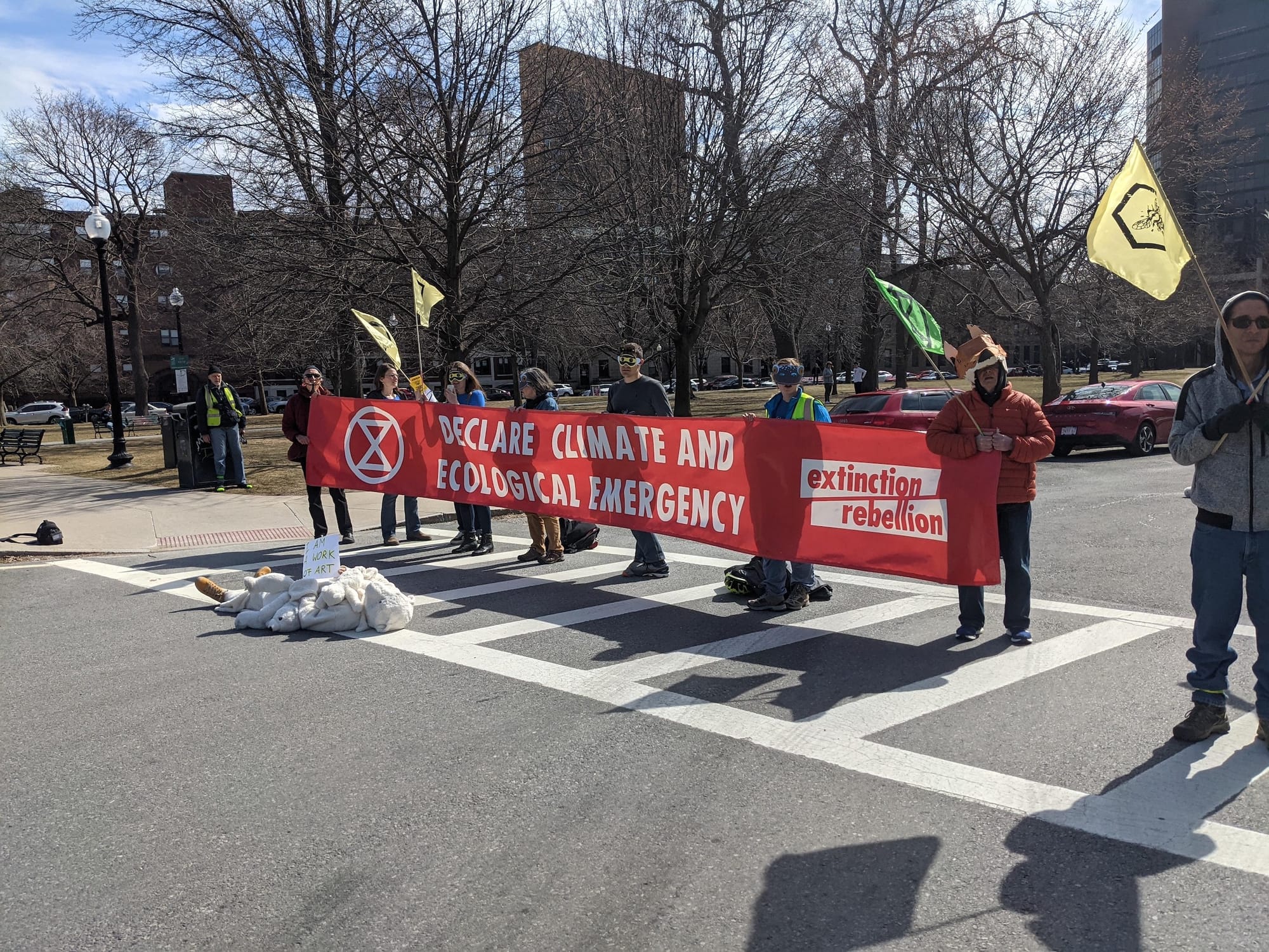 “We were going to protest the fact that everyone’s still talking about the heist 33 years after it occurred, yet no one talks about the major loss of biodiversity, the loss of animals, and the extinction event that's happening," wrote Extinction Rebellion member Lita Xú Líng Kelley in a blog post. At Saturday's action, members donned animal masks and fuzzy costumes and held signs and banners stating, "13 paintings stolen; 1 million species stolen," "Declare Climate and Ecological Emergency," and "Justice."
