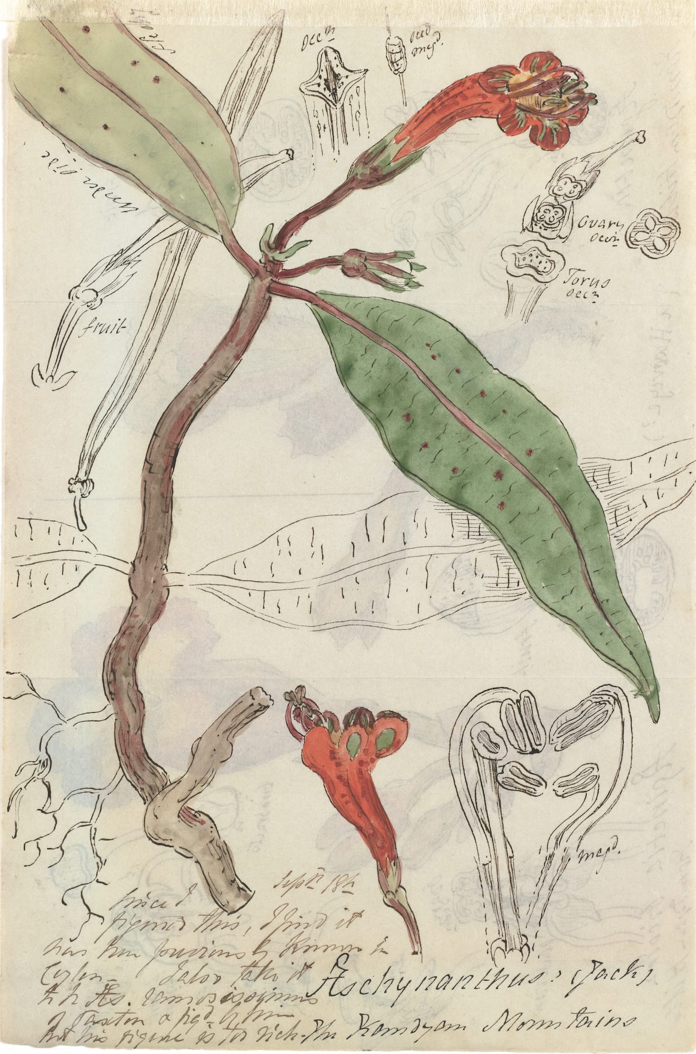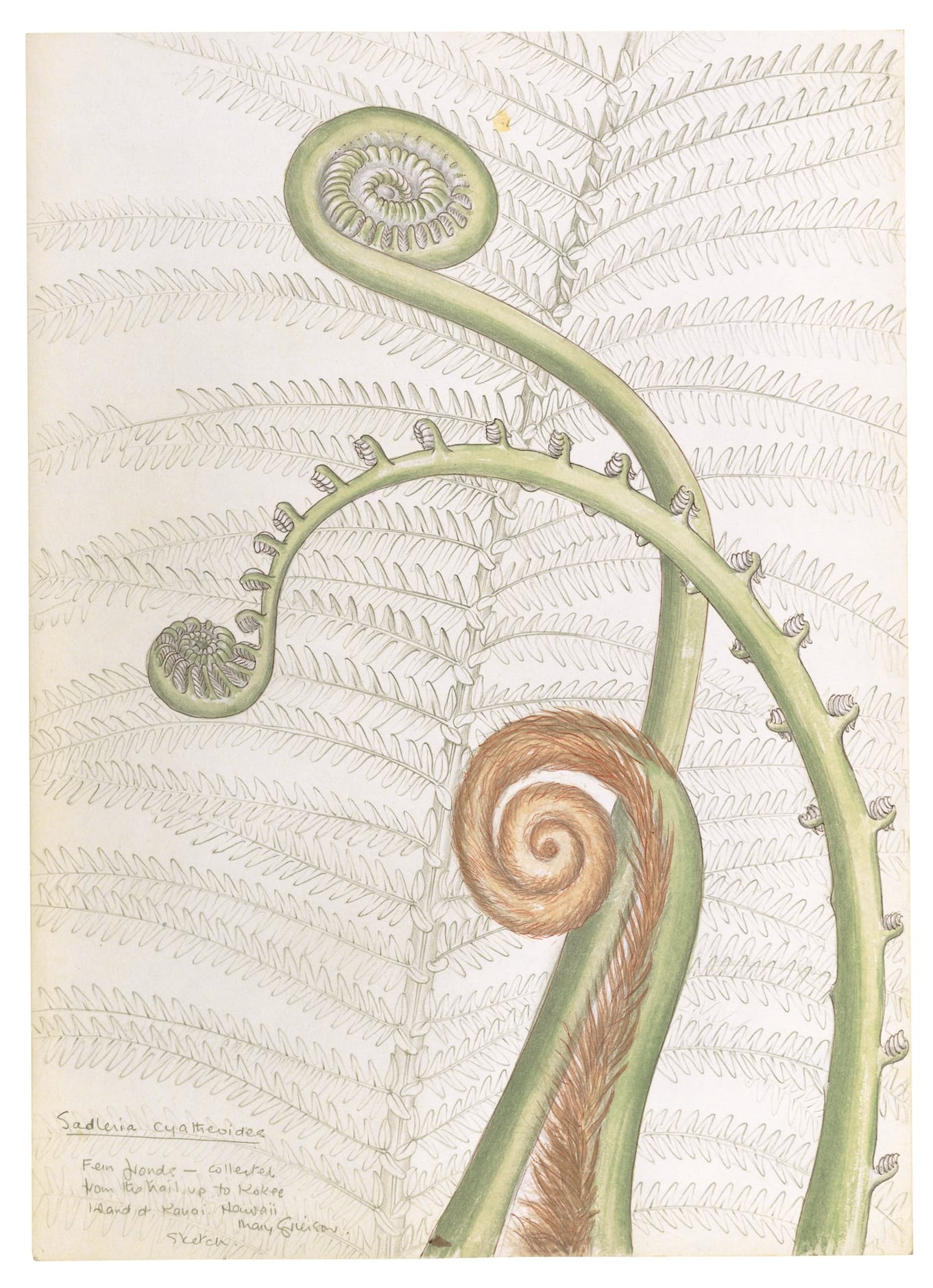 The authors note that as these sketchbooks were usually preparatory work for illustrations, or accompanied scientific field notes, they weren’t often saved. Some have been disappeared over the years, such as the British flowering plant drawings by Mary Anne Stebbing burned in an 1881 house fire, and some are near losses, like the papers of naturalist William Griffith that were simply discarded in the East India Company’s basement. Those that survive often convey ephemeral moments of the seasons and environments that today are changed. Whether William Swainson’s 19th-century pencil drawings of New Zealand trees in the midst of 19th-century colonization, Conrad Gesner’s 16th-century illustrations detailing plants from root to seed, or Shafi’ ‘Abbásí’s 17th-century compositions that merged Mughal descriptions with European flora, Botanical Sketchbooks demonstrates the diverse ways the fleeting lives of plants have been observed, studied, and immortalized in art.