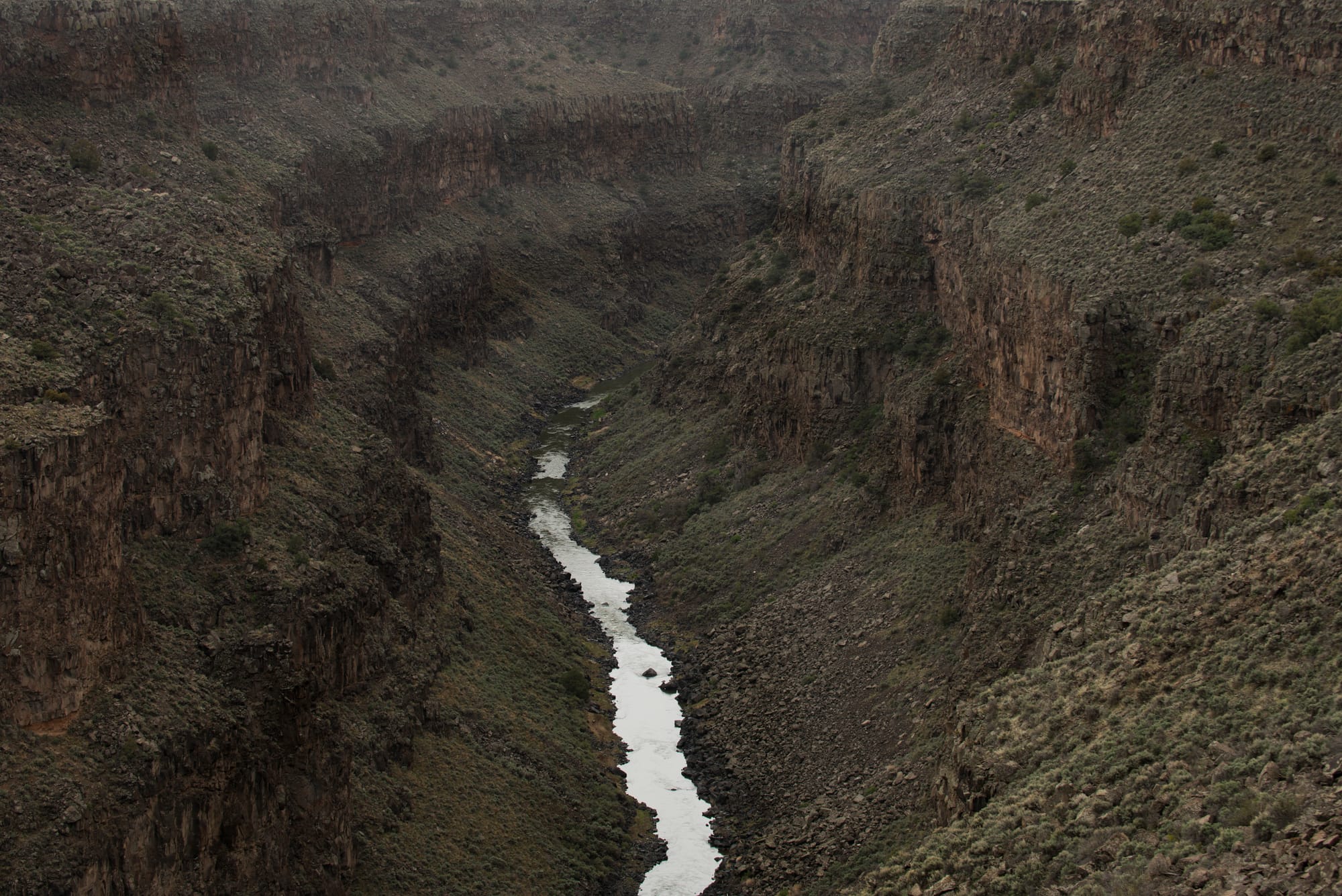 Perhaps the most timely photograph in the show is Hessler’s drone’s-eye view of a canyoned stretch of the Rio Grande as it winds through New Mexico. Here is that almost-mythical boundary, a thin line of silver water meandering through rough terrain, which, in itself, should deter inter-country travel.