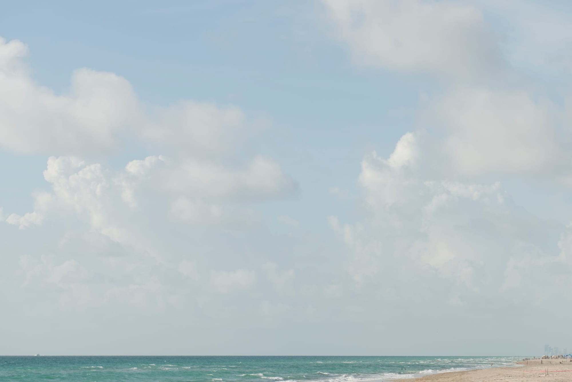 A fine-art photographer based in Camden, Maine, Hessler explains in a video on the CMCA website that he favors “emptiness” and “vastness” in his imagery; the sky, for example, takes up most of “Hallandale Beach, Florida.” Only a thin strip of ocean and small wedge of beach along the bottom interrupt this skyscape — and without the photograph’s subtitle, “Where many Cuban refugees make landfall in the U.S.,” you’d never know the scenic view could be the site of turbulent arrivals.