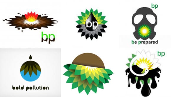 The BP Deepwater oil spill disaster has sparked a tremendous amount of creative outrage, some of which we’ve been exploring on Hyperallergic LABS all week. In addition to various protests and performances, not to mention some satirical Twitter feeds, there have been numerous attempts to critically appropriate BP’s logo. Amateur and professional graphic design illustrations have been circulated throughout the Internet to re-brand the corporation’s image to reflect its destructive nature.