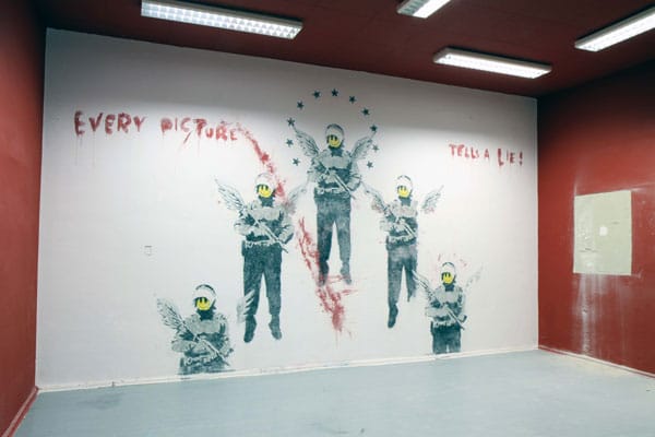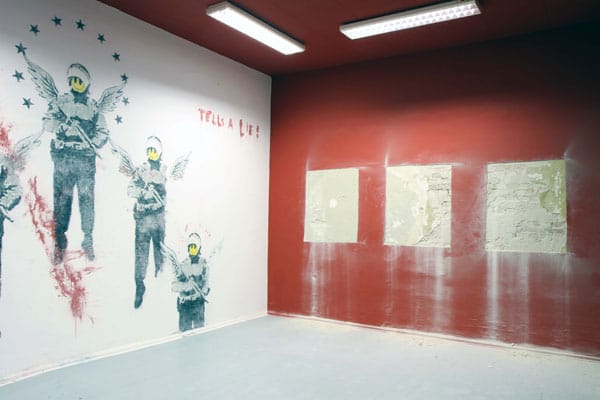 “It was an attempt to see if I could appropriate an installation, first off, and to see how the idea of copyright and ownership when appropriating an installation from an older installation,” he says. “…[I was] working in restoration in a contemporary way. It wasn’t necessarily about Banksy, but it was the obvious choice to make a critique of copyright. He’s an artist appropriating images.”