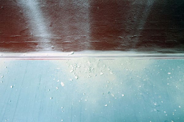 The idea of “What Lies Beneath…” was been something the artist has been pondering for years. When he finally decided to create the work he reviewed a DVD of the show and found the spots where the walls were painted. He then hired a restorer from the Czech Republic. After the restoration was complete he painted the room red as the work felt incomplete without that touch. He says it made it feel more cinematic, though I suggested it made it felt like a Roman ruin. “I was thinking more cinematic, but could be Roman as well,” he replied.