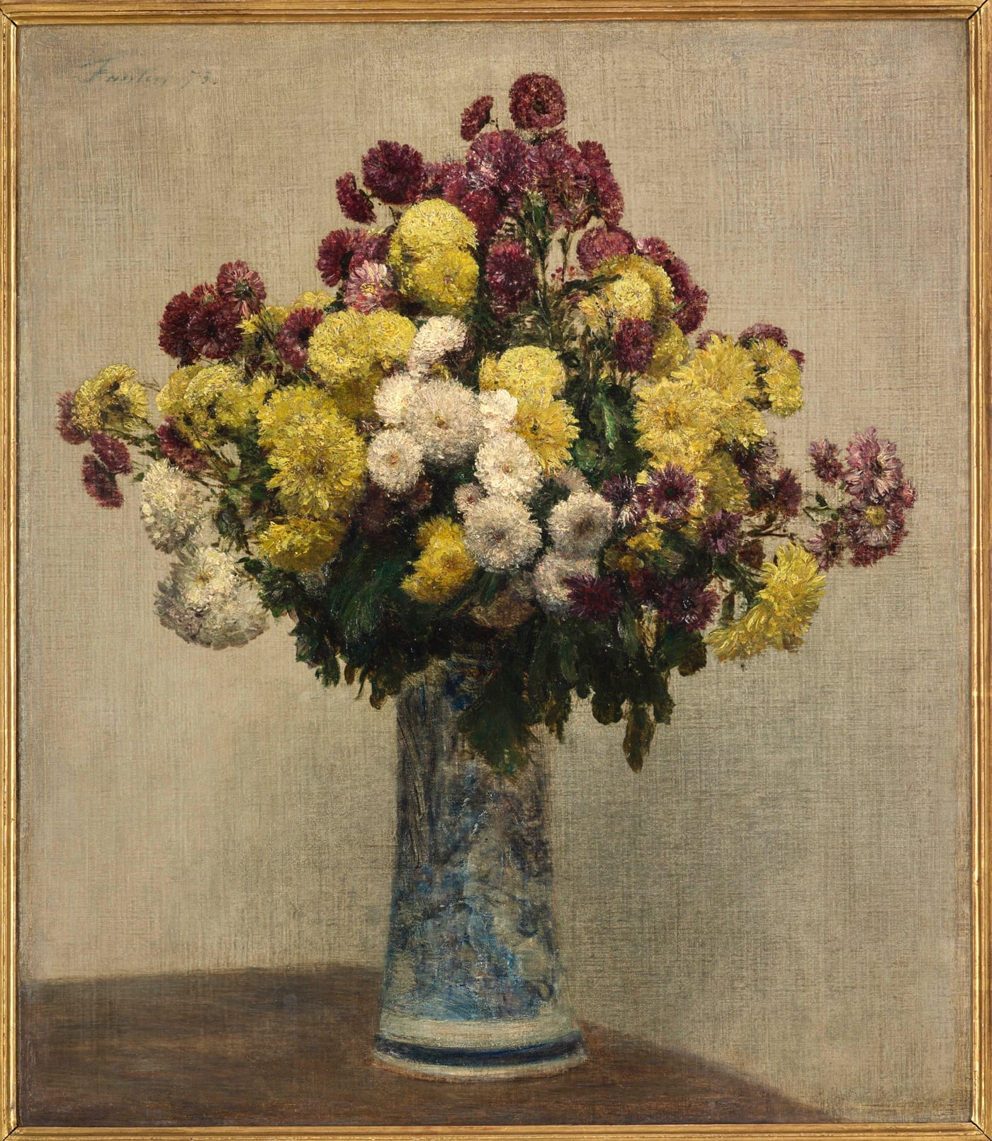 The juxtaposition of 13 paintings from the museum’s 19th-century collection with 11 Schnabel works from the last 40 years — timed to promote the release of Schnabel’s film about Vincent van Gogh, At Eternity’s Gate — does nothing to change my critical evaluation of Schnabel’s frightful paintings as the epitome of 1980s self-flattering macho excess. (He is a much better filmmaker.) Indeed, his exorbitant exercise in ego had me pitying the mannerist, bulldozing, Neo-Expressionist artist. Does his Trump-like blind faith in himself blind him that badly? (Also, Orsay can you see?) His work, long contemptuous of the prevailing pieties of “good taste,” looks terrible in this context. He really wants us to compare such pretentious and poorly painted twaddle as “Portrait of Tatiana Lisovskaia as the Duquesa de Alba II” (2014) to Henri Fantin-Latour’s delicately refined “Chrysanthèmes in a Vase” (1873)?