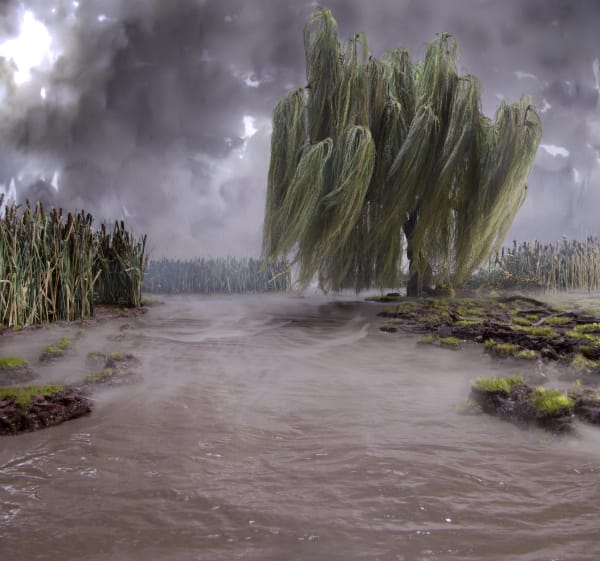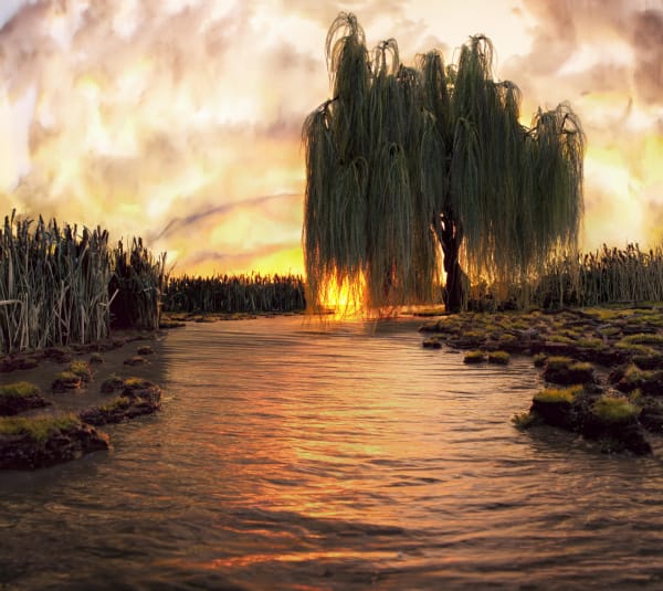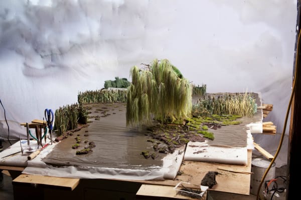 Although the model looks a bit shabbier than some of the others, Matthew Albanese achieves a stunning metamorphosis in his photographs. Storms and sunsets are captured in his miniature of a marsh and willow tree, so believable you’d never guess they were made of coffee grounds and ostrich feathers.