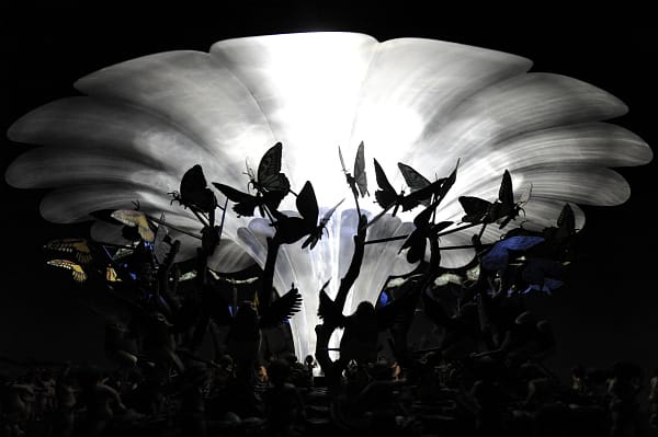 I’d been promised “enchanted landscapes, fantastic worlds, and strange encounters” and had already voyaged through wartime Italy, haunted hallways, Chuck Close’s art studio, and a seedy peepshow. Then I collided with all three at once. A sedentary carousel of animals and imps suddenly spun into a 3D zoetrope where the fiendish tiny people tried to stab giant snails and jumping fish and smash a bird’s eggs, while butterflies thrashed away to escape their missiles. A strange whirring, creaking noise accompanied the primal scene. It was perfectly otherworldly.