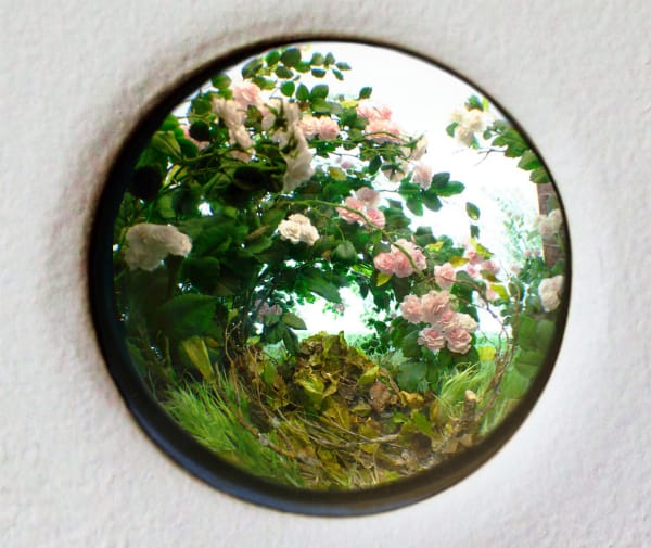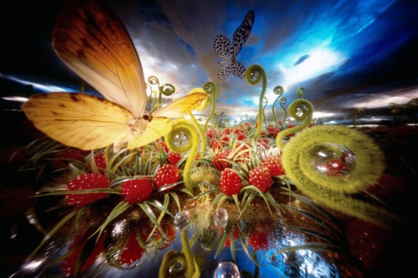 Otherworldy spans two floors of MAD and includes work by 38 artists. It quickly becomes clear that there are two universes of artists in the exhibit: the model-makers and the photographers. Some of the models are extraordinary in themselves, like Patrick Jacobs’ incredibly detailed natural panoramas viewed from small portholes in the museum walls. Others only transform through the artist’s eye, such as Bethany de Forest’s jumbles of plastic fruit and insects that change into what looks like psychedelic digital art under her camera.