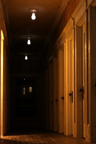 Not much is immediately striking about Rick Araluce’s empty hallway, but peer down the row of doors for a moment and you will find it haunted by faint sounds of radios and muffled voices seeping from the cracked doors.