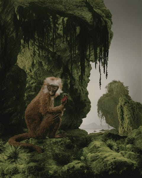 A layered diorama by Didier Massard is brought into beautiful, yet eerie, dimensions in the photograph results. Something is somewhat off and ominous in the perfect landscape, perhaps the length of the monkey’s fingers or the unfamiliar fruit it grasps in its paw. Coinciding with Otherworldly, FIAF Gallery is exhibiting a solo show of Massard’s diorama photographs through July 5.