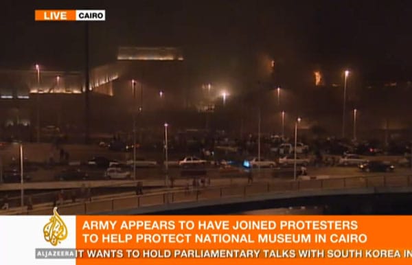 Al-Jazeera is reporting a troubling development at the Egyptian Museum in Cairo. The Qatar-based news network has been extensively covering the political protests that have engulfed Egypt, causing the country to cut off the internet to those within its borders. Al-Jazeera has been showing images of