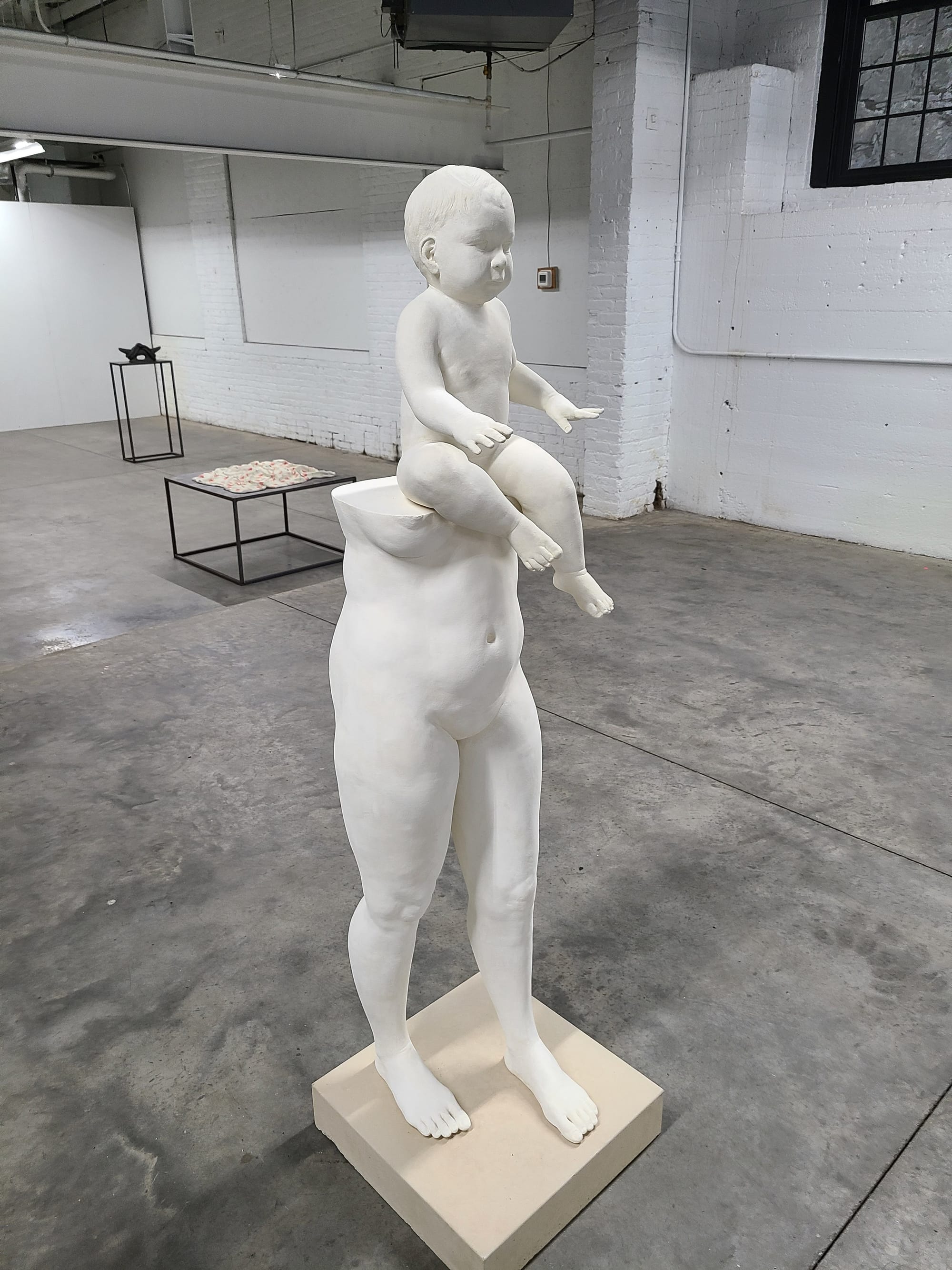 For the last day, I ended up in my own little village by the Elijah Wheat Showroom, which is run by Carolina Wheat and Liz Nielsen. I have visited their gallery several times before because they have consistently strong shows. (They also have an alluring ground floor space that is just a few feet from the Hudson's shore.) They are now showing Ashley Lyon, in Tender Temper, a series of ceramic sculptures that deal with the tangled and tortuous issues bound up in motherhood that are rarely publicly discussed. For example, the piece "Mother" (2021) shows a woman's naked torso with a seated baby replacing the rest of her torso and head above the midpoint of her chest. It's as if her body has been partially taken over by another being. This is not the story that is typically told about the joys and struggles of being a mother, and it's refreshing in its candor.