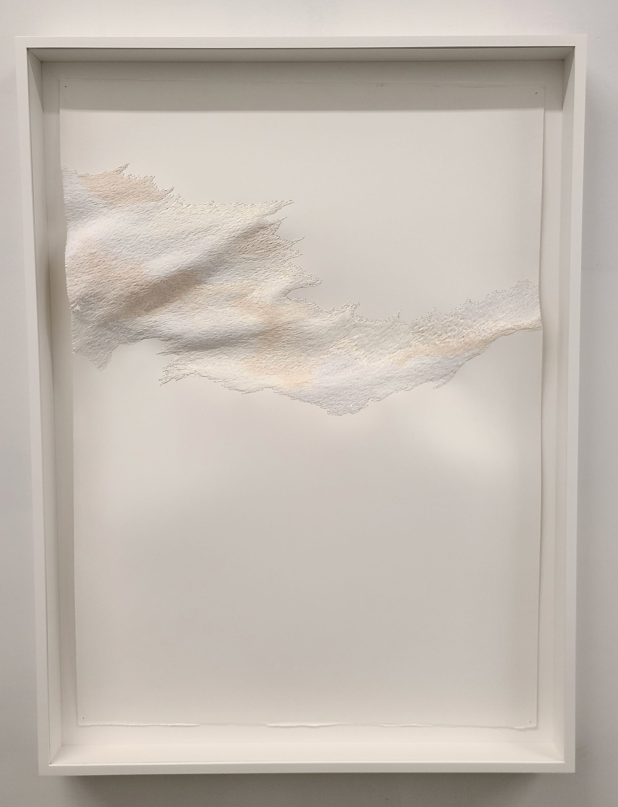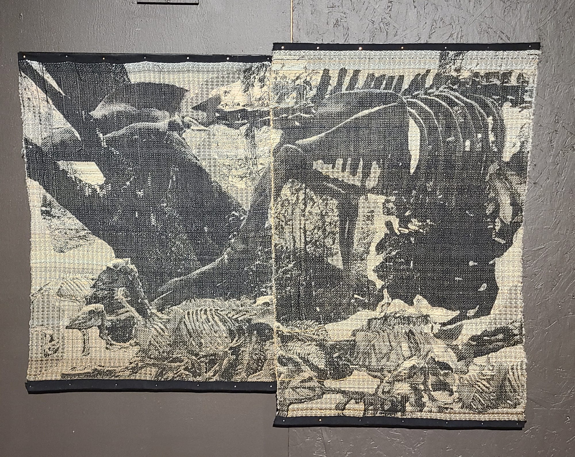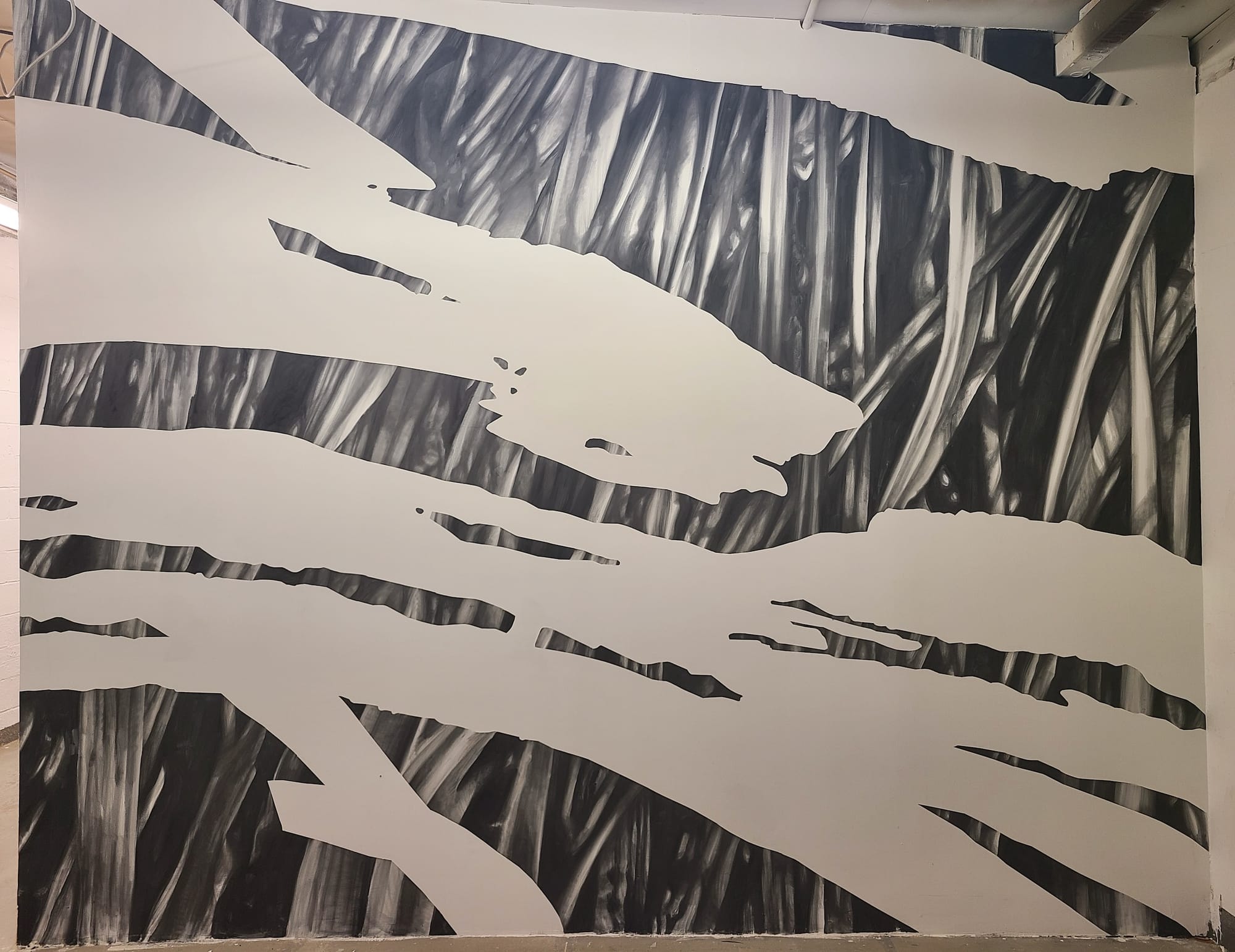 I first visited Mohonk Arts in High Falls, which has a residency program that currently includes four artists, but for the weekend they invited several more creators into their shed-like building. The work there was all kinds of gorgeous. I particularly liked Suzy Sureck’s “Branch” (2017), an installation of stainless steel antlers jutting out from the wall, and precise lighting to make the object feel both beautiful and menacing. I adored Megan Pahmier’s “fall-out 20/21” (2021), which, on one side of the hall, consisted of one thin scrim of fiberglass that had been riddled by some violent force, and against the other wall the excised pieces suspended in perfect formation.