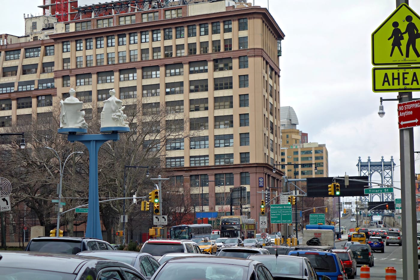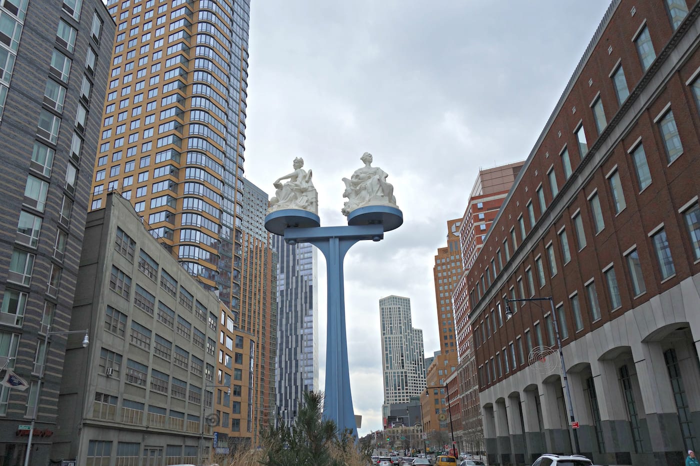 Brian Tolle’s “Miss Manhattan” and “Miss Brooklyn” are installed at Flatbush Avenue Extension and Tillary Street, Downtown Brooklyn.