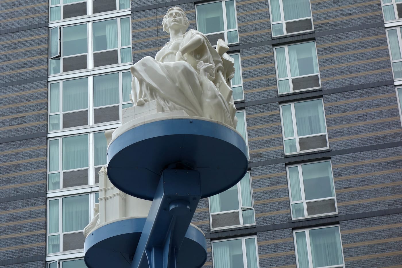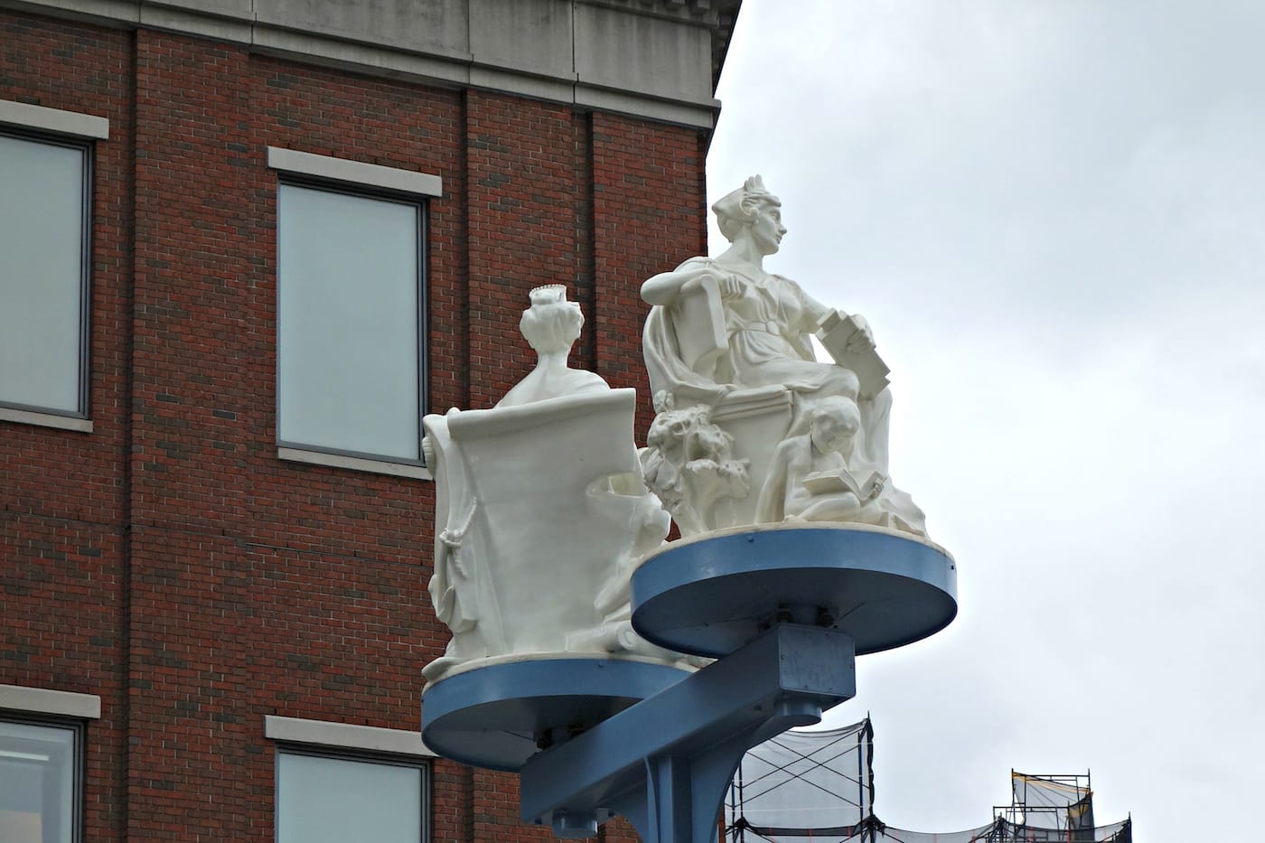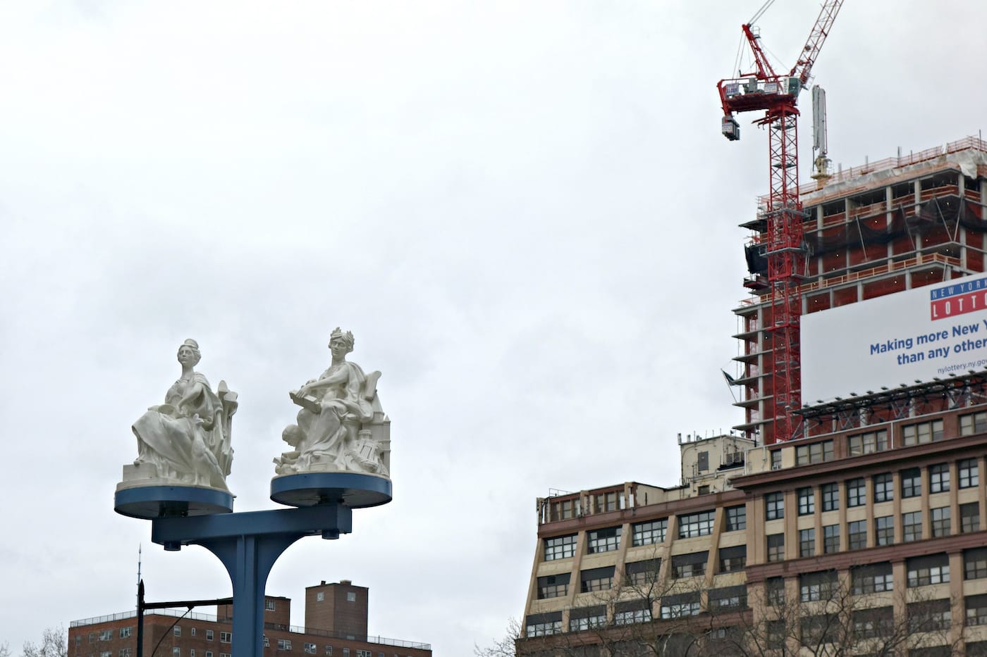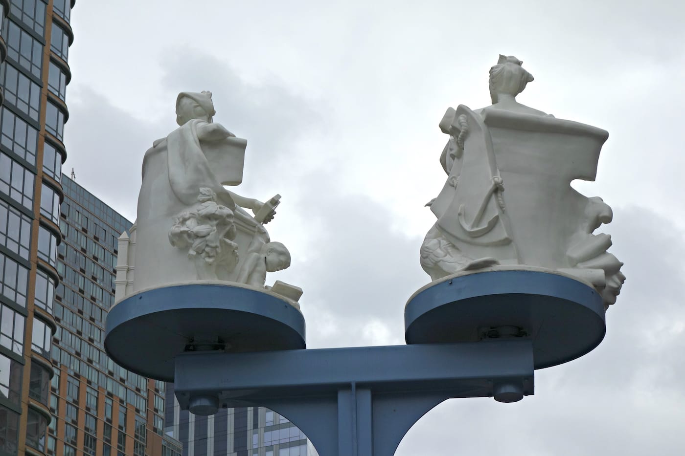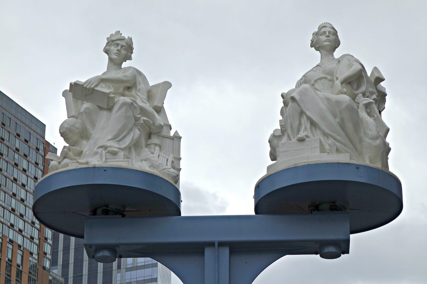 Gilded Age Statues Return to the Manhattan Bridge, Now with Kinetic Illumination