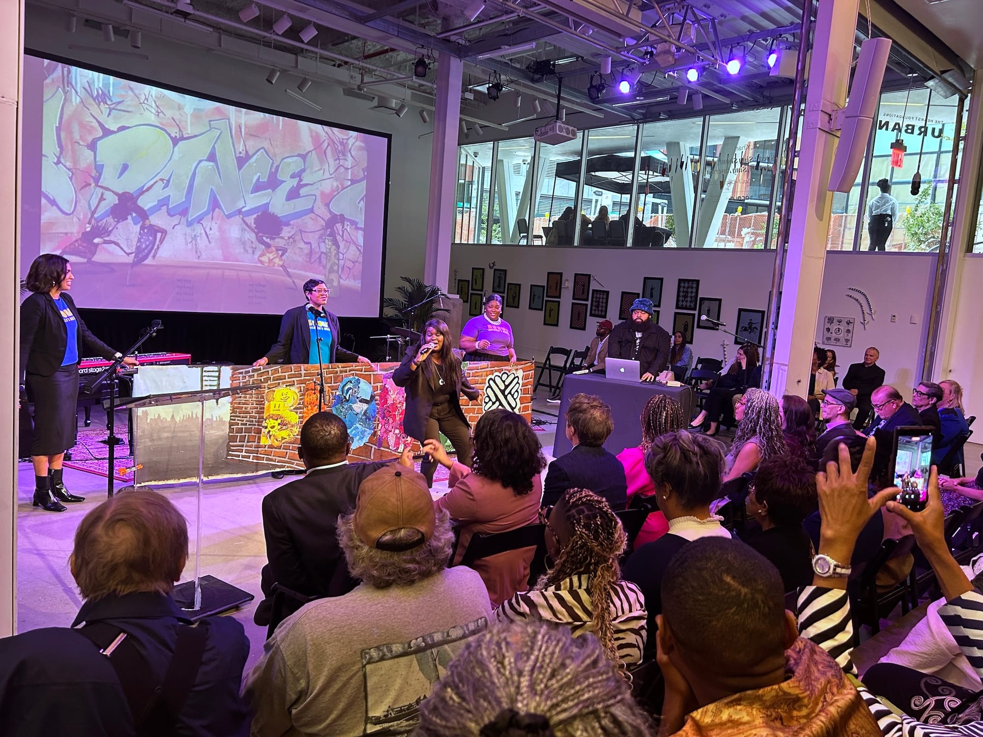 At today's press conference, the organization led a musical reading of the 2024 children's book My Block Looks Like, written by Bronx-born author Janelle Harper and illustrated by graffiti artist Frank Morrison, which celebrates the borough's cultural heritage and hip-hop history.