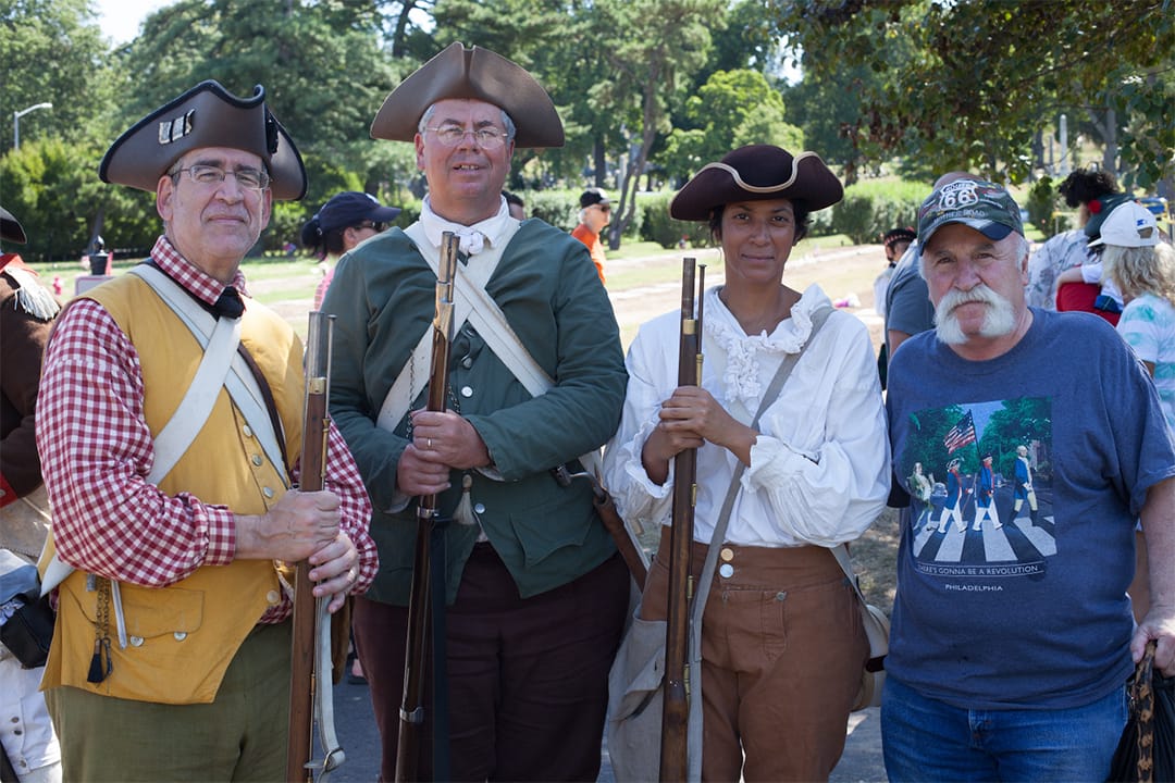 Alicia Grullon, “Battle of Brooklyn (3 Re-enactors and Visitor)” (2016)