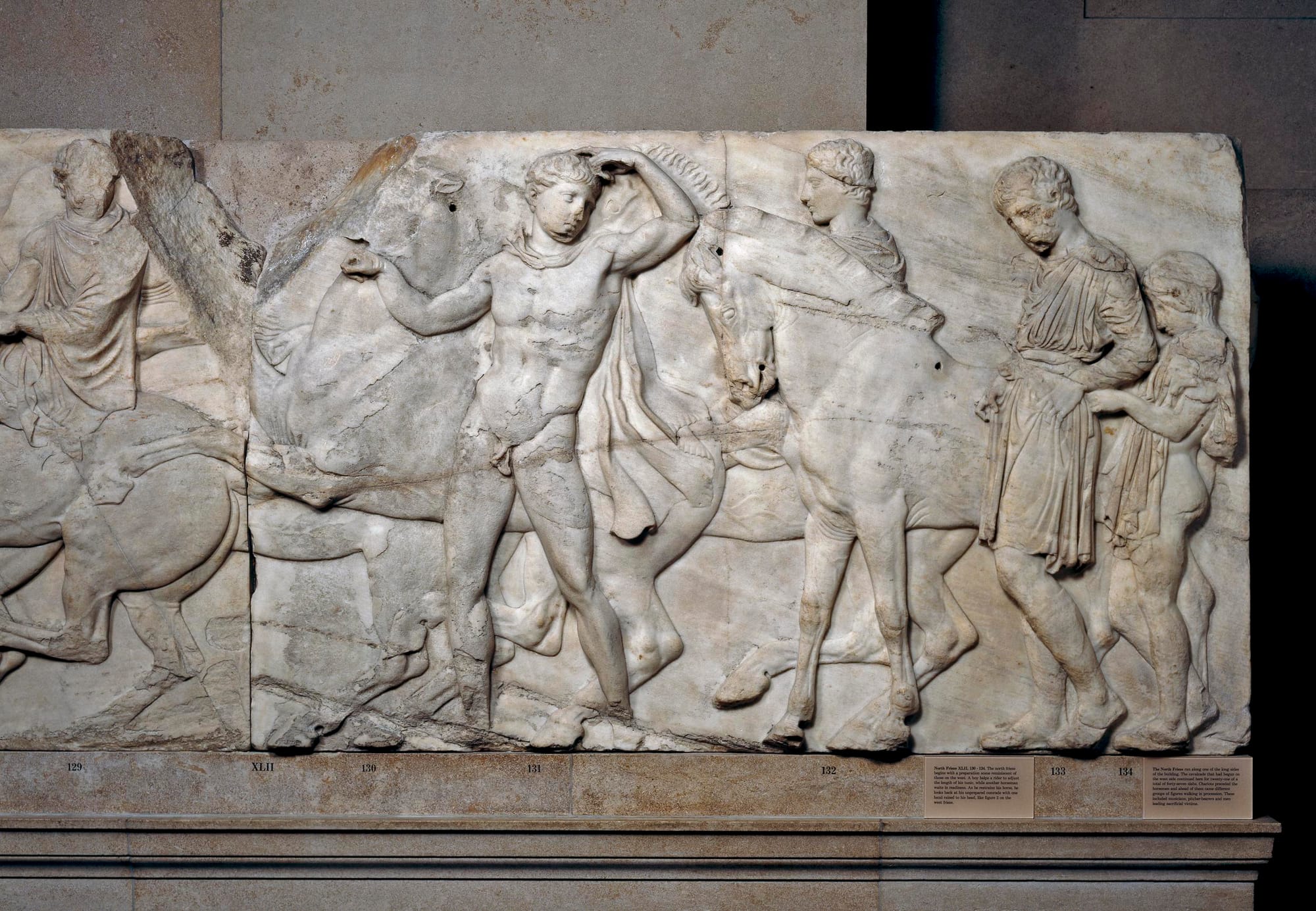 The Parthenon marbles are a group of friezes, metopes, and sculptures that were stripped from the temple of Athena in Greece in the early 19th century at the behest of the seventh Earl of Elgin. Britain acquired a significant portion of the marbles in 1816, and in 1832 the objects went on display at the British Museum, where they have remained a collection highlight since. Greece, which views the marbles as an important piece of cultural patrimony stolen while the country was under occupation, first formally requested the marbles’ return in 1983; the request was denied. Despite the many calls to repatriate the marbles in the ensuing decades, little headway has been made in the dispute. In response to an entreaty from Greek prime minister Kyriakos Mitsotakis in 2021, British prime minister Boris Johnson suggested that the marbles were acquired legally, later adding that decisions regarding their restitution were within the museum’s, rather than the government’s, remit.